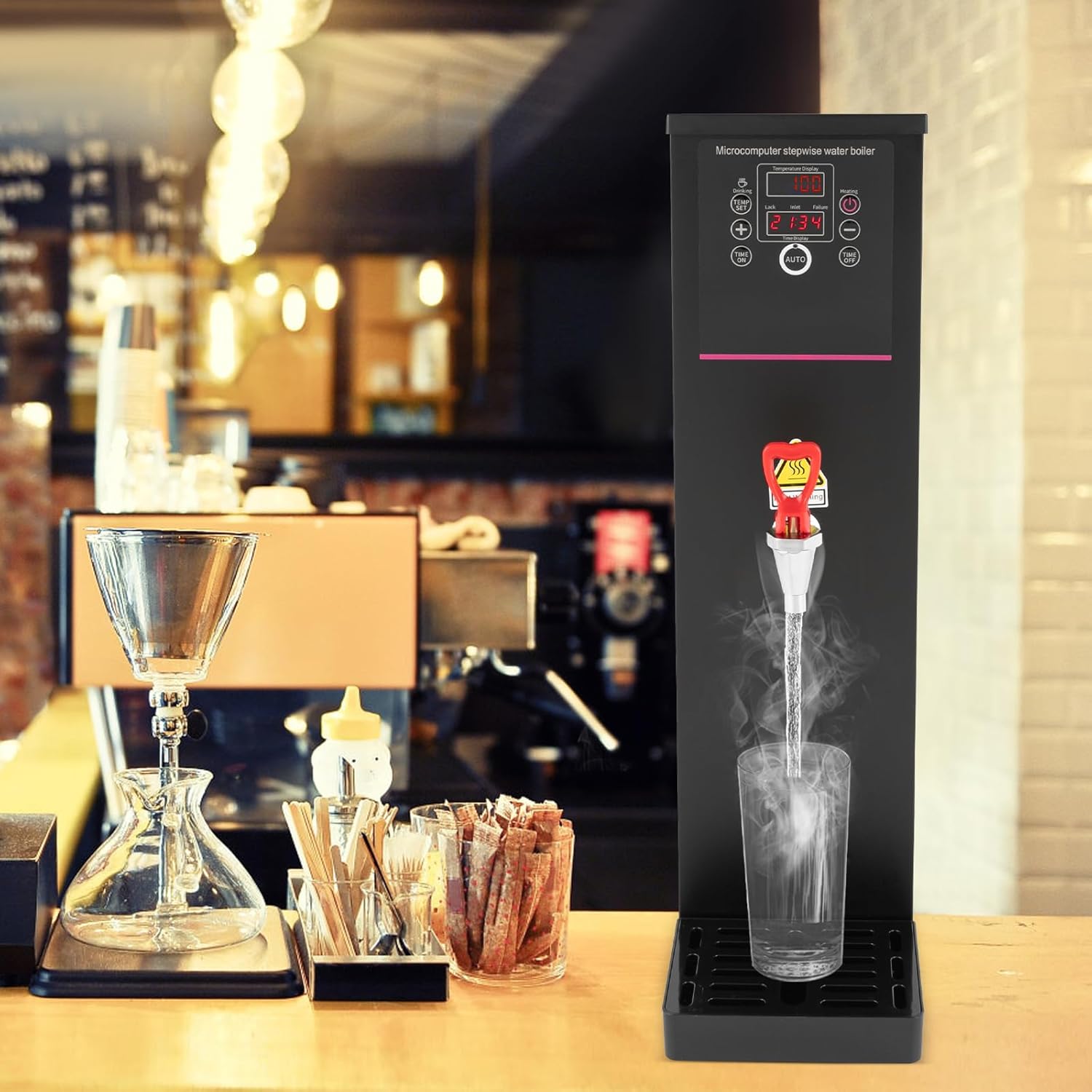 - 【Easy to Use & Good Material】: The smart digital display screen shows you the temperature in real-time and lets you see all the functions at a glance. The sensitive keys allow you to adjust easily. You can also set on and off times for your convenience. This commercial water boiling machine and dispenser mainly uses 304 stainless steel for the material, with high hardness, good performance of corrosion and rust resistance, making you drink it with peace of mind.