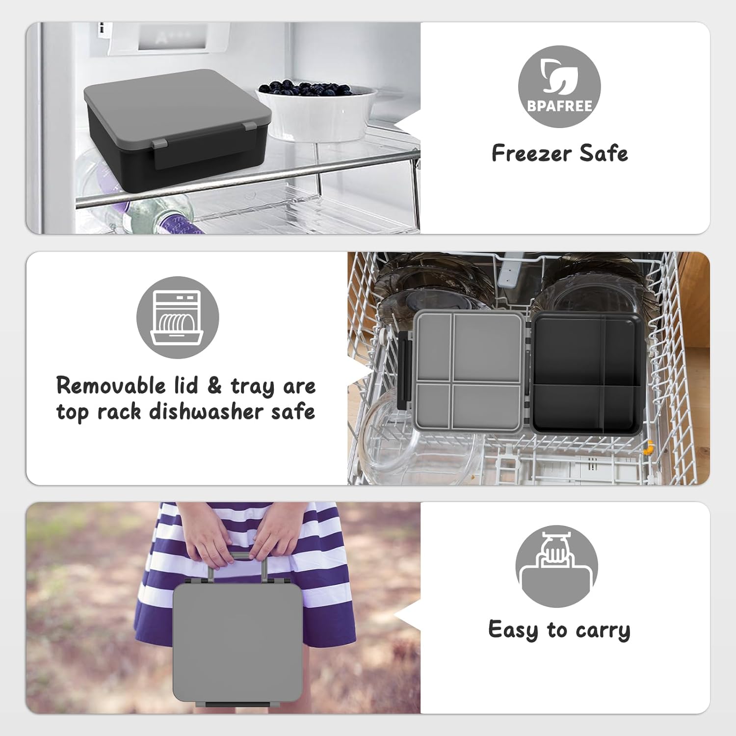 - Perfect Lunch Box for Healthier Meals: Our bento box is crafted from premium food-grade material that is odorless, BPA-free, non-toxic, stain-resistant. It features four versatile compartments, portioned perfectly for a child's appetite.