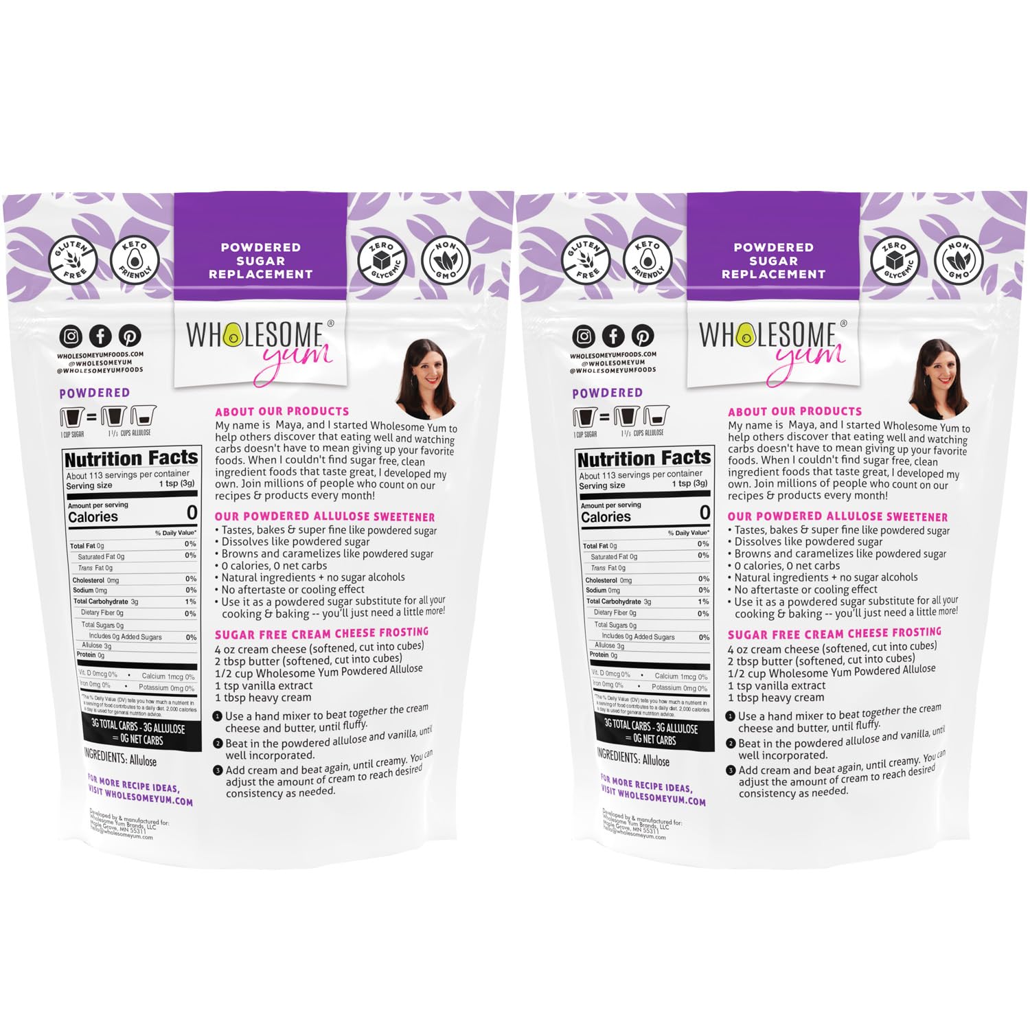 Wholesome Yum Powdered Allulose Sweetener - Natural Keto Powdered Sugar Substitute - Non GMO, Zero Carb, 0 Calorie, Sugar Free, No Aftertaste - Confectioners Sugar Replacement (12 oz, 2 Pack)