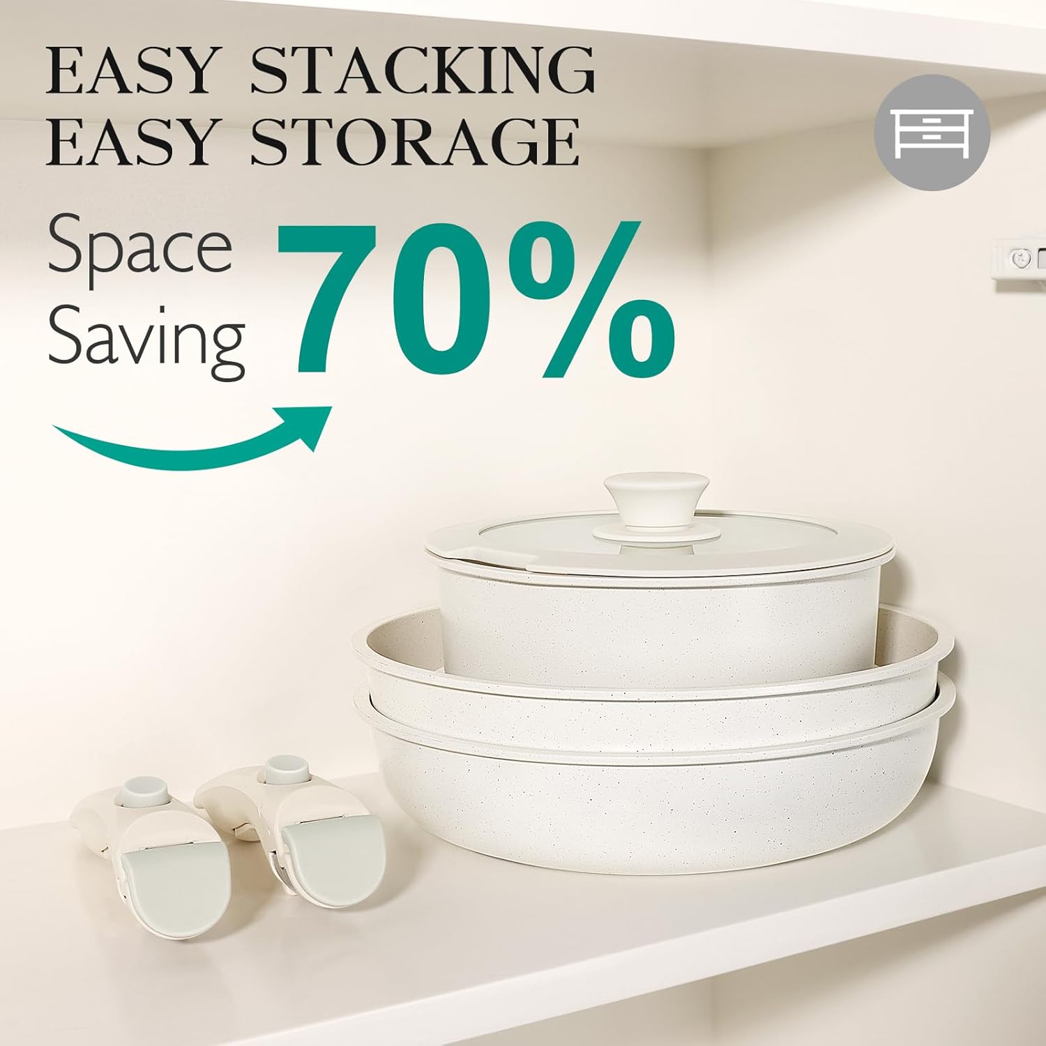 GiPP 11Pcs Pots and Pans Set Non Stick, Cookware Sets Nonstick Detachable Handle, Induction Kitchen Set Removable Handle, RV Cookware set, Oven Safe