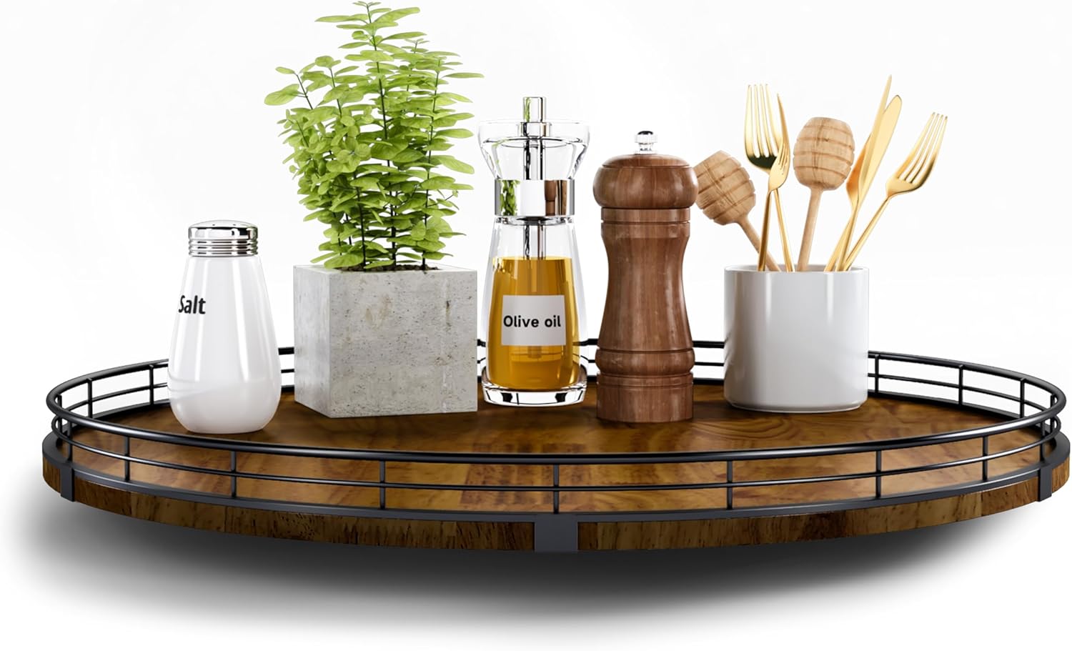 Farmhouse Oak 18" Lazy Susan Turntable Organizer for Cabinet, Round Wooden Lazy Susan Organization and Storage for Dining Table, Pantry, Kitchen, Countertop, Cupboard,Home Decor, Walnut Wood (18")