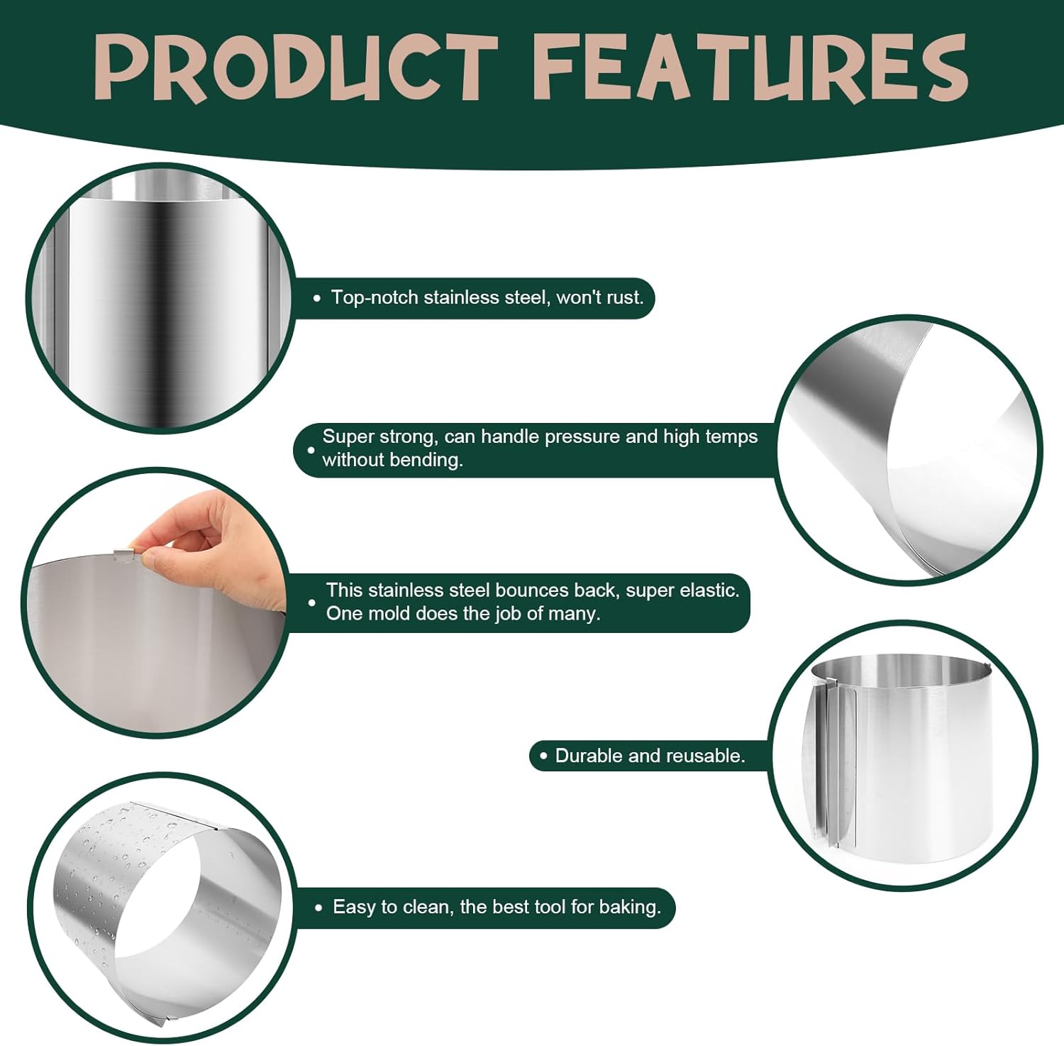 - 【High-quality material】 Our mousse cake molds are made of stainless steel, which is durable, anti-corrosion, heat-resistant, tough, non-stick, food-grade and easy to clean. Dishwasher safe, no worries about cleaning after use