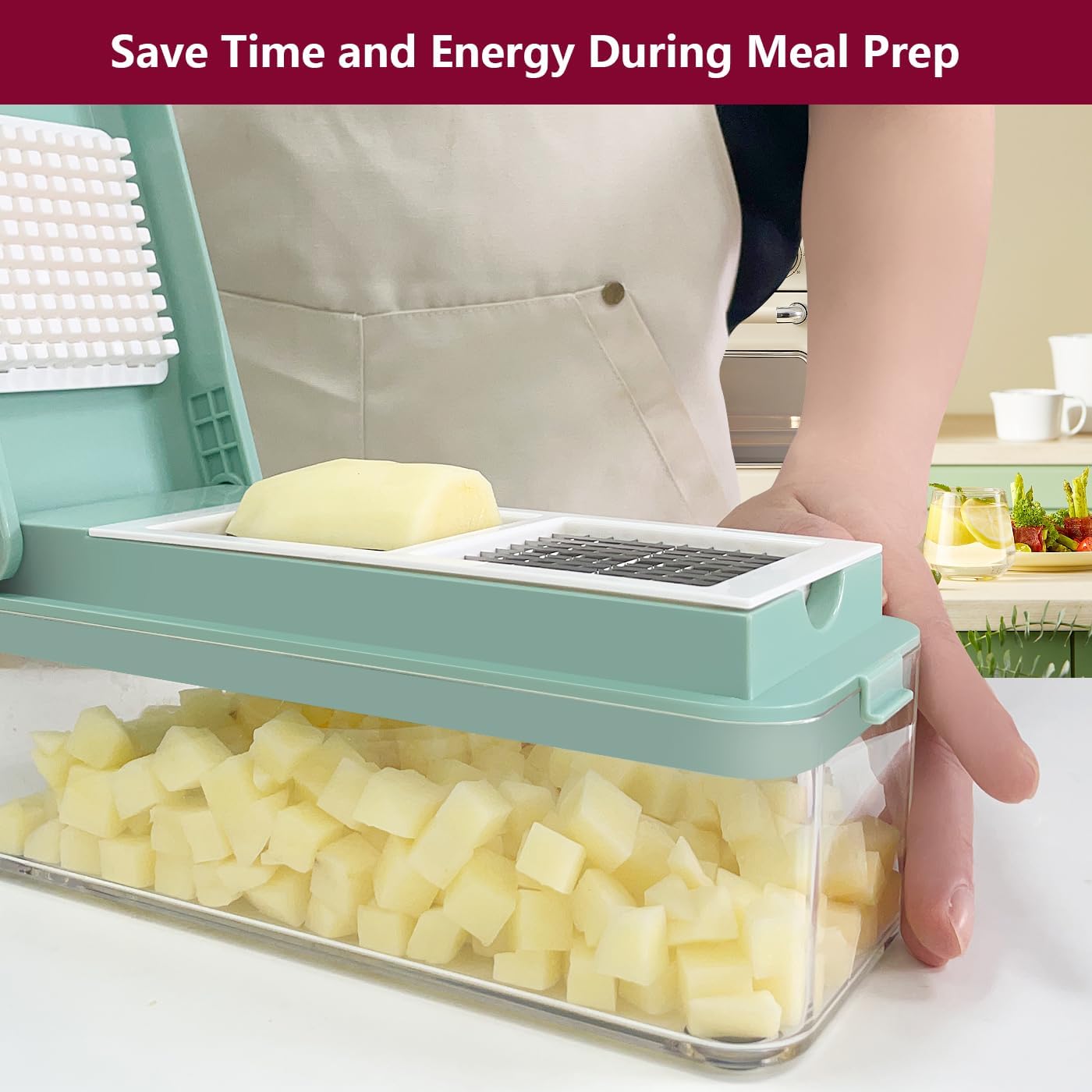 - Effortless Meal Preparation: This vegetable chopper with 2 interchangeable blades, including a fine dicer and a medium dicer, makes chopping veggies a breeze, saving you time and effort.