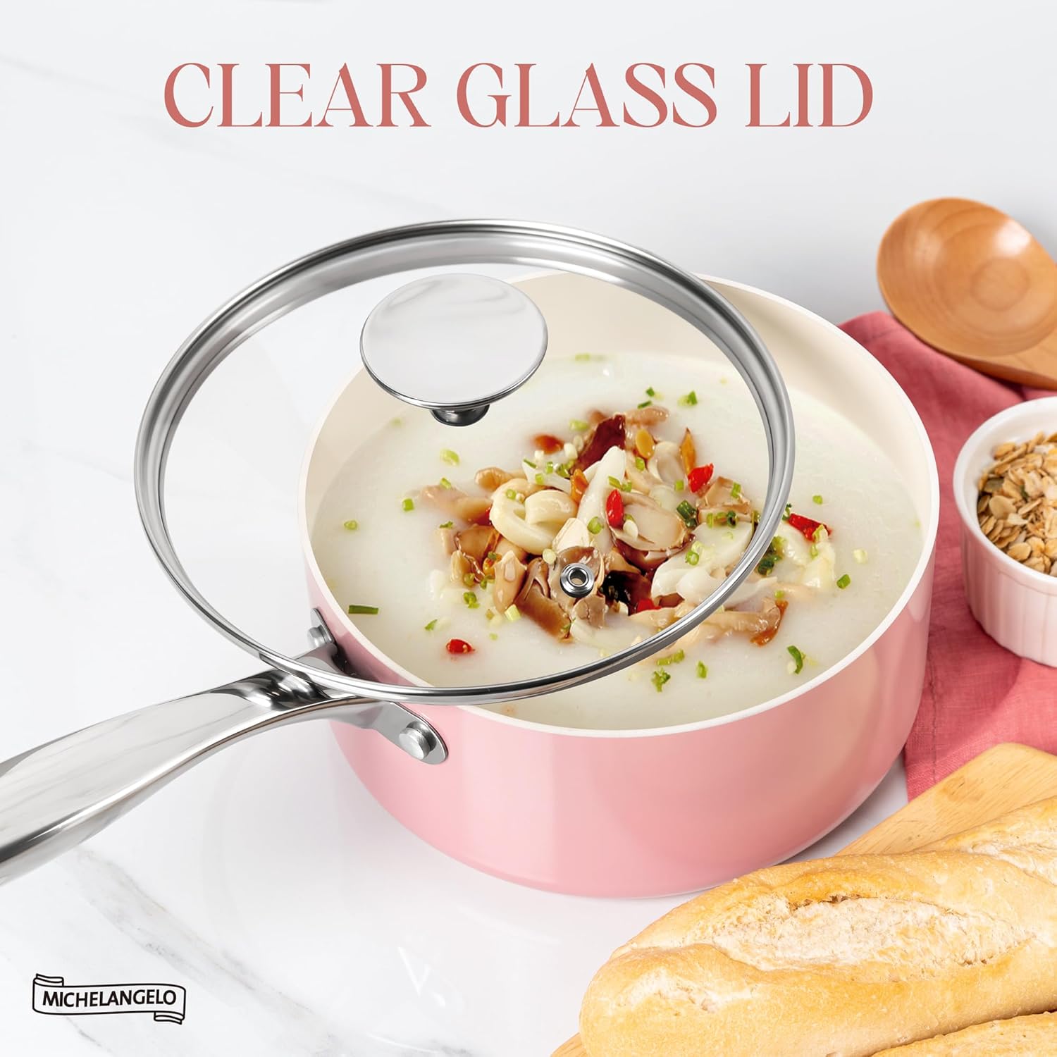 MICHELANGELO 3 Quart Saucepan with Lid - Non Toxic Sauce Pan with Nonstick Ceramic Coating, Scratch-Resistant, Induction Saucepan Suitable for All Stovetops, Pink