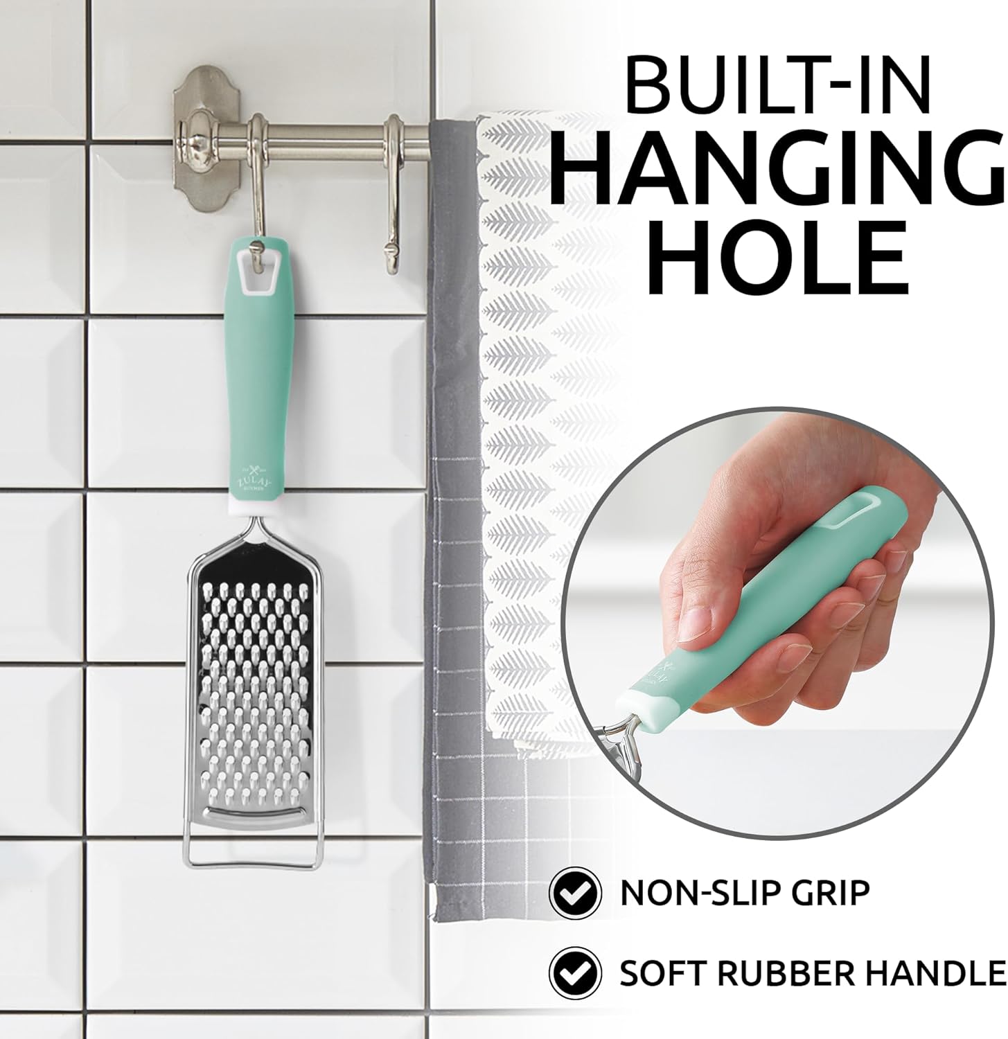 Zulay Kitchen Professional Cheese Grater Stainless Steel - Durable Rust-Proof Metal Lemon Zester Grater With Handle - Flat Handheld Grater For Cheese, Chocolate, Spices, And More - Mint