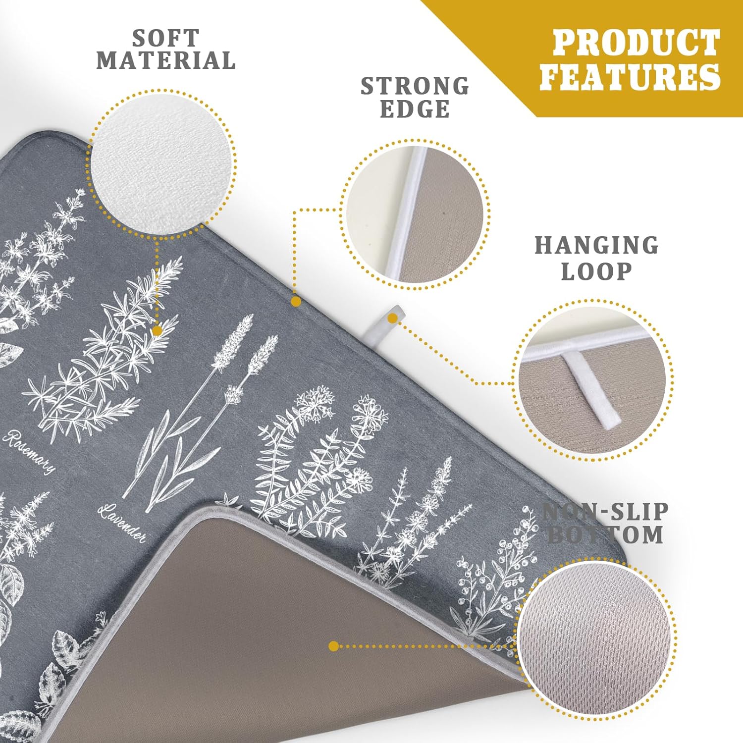 Flower Herbs Dish Drying Mat Wild Plant Dish Rack Mat with Hanging Loop Fast Dry Dish Drainer Pad for Kitchen Counter Sink 18x24 Inch