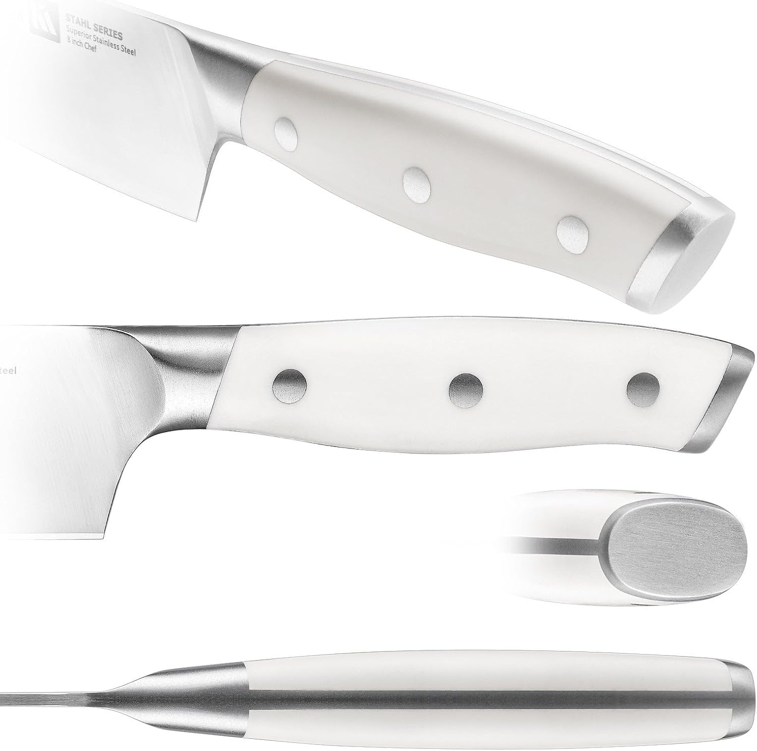 Stahl High Carbon Exclusive German Steel 8 Piece Knife Block Set (White)