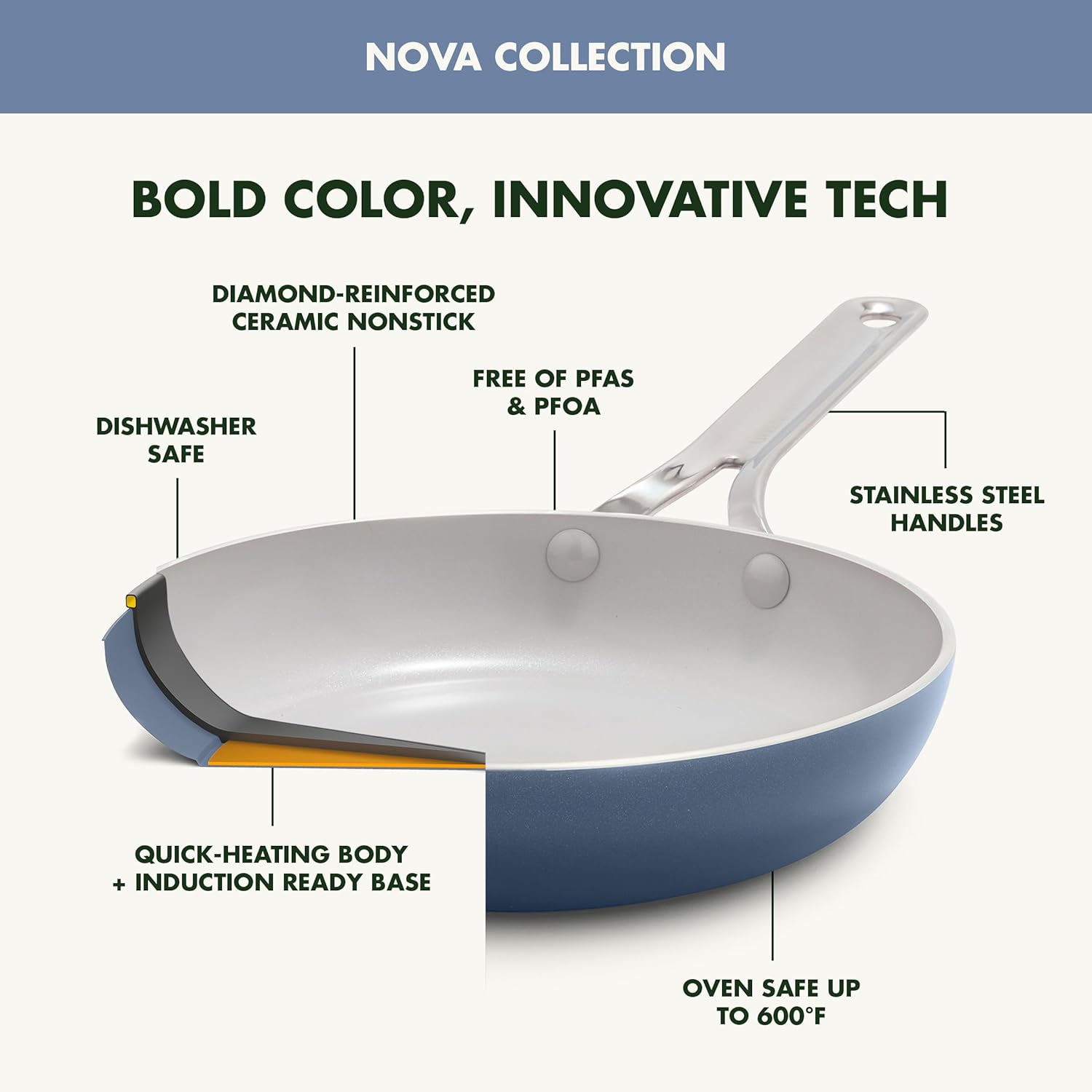 GreenPan Nova 10-Piece Cookware Pots & Pans Set, Oprah’s Favorite Things 2024, PFAS-Free Ceramic Nonstick, Fry, Sauté, Stockpot, Utensils, Lids, Induction Suitable, Dishwasher & Oven Safe, Ocean Blue