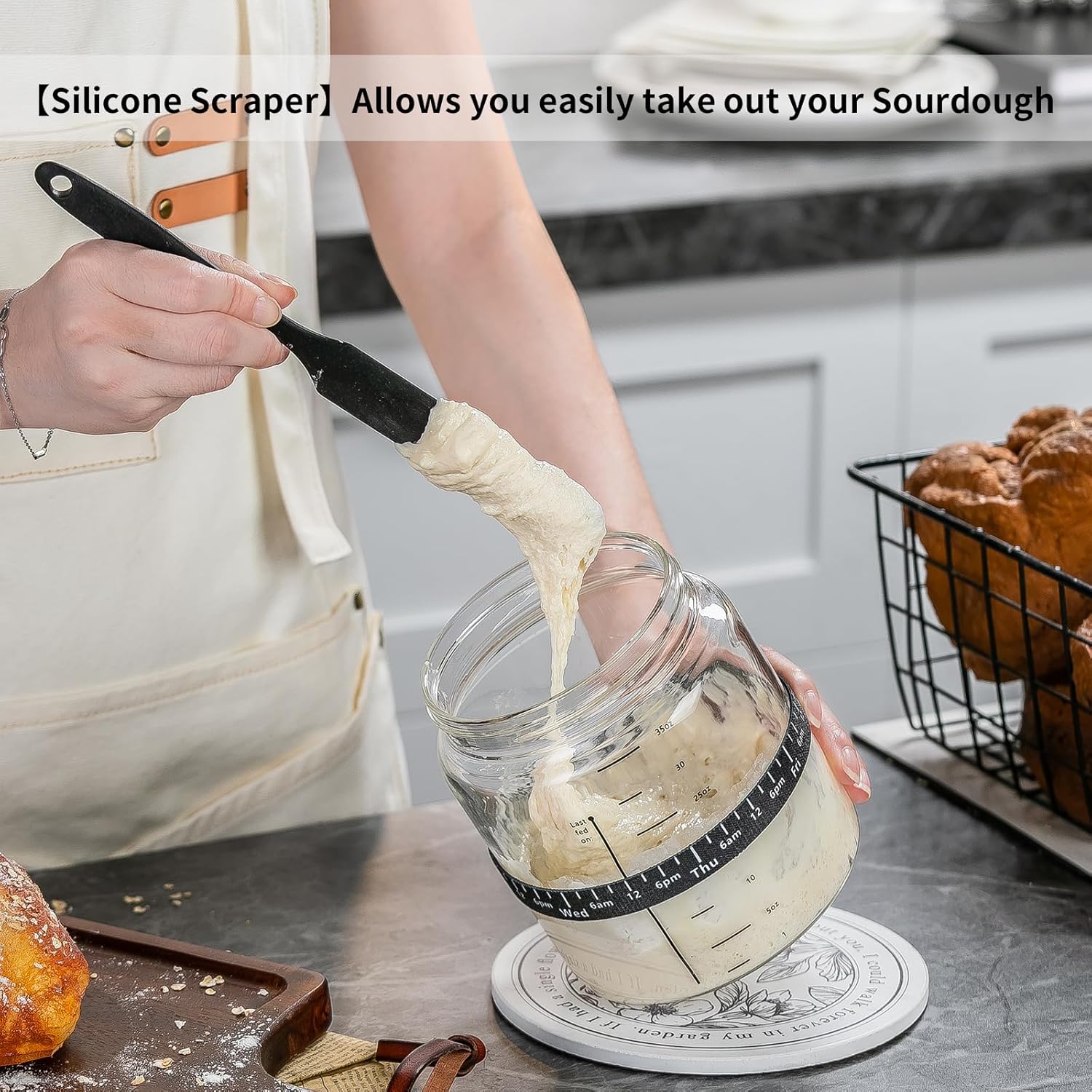 - 【Thermometer and Feeding Day Tracker Band】:An instant-read thermometer will help monitor the temperature of your starter and ensure that it's in the optimal range for increasing fermentation activity.Elastic band marked with the days of the week & the time of day gives you an accurate indication of when you last fed your sour dough starter and the starting feeding level.