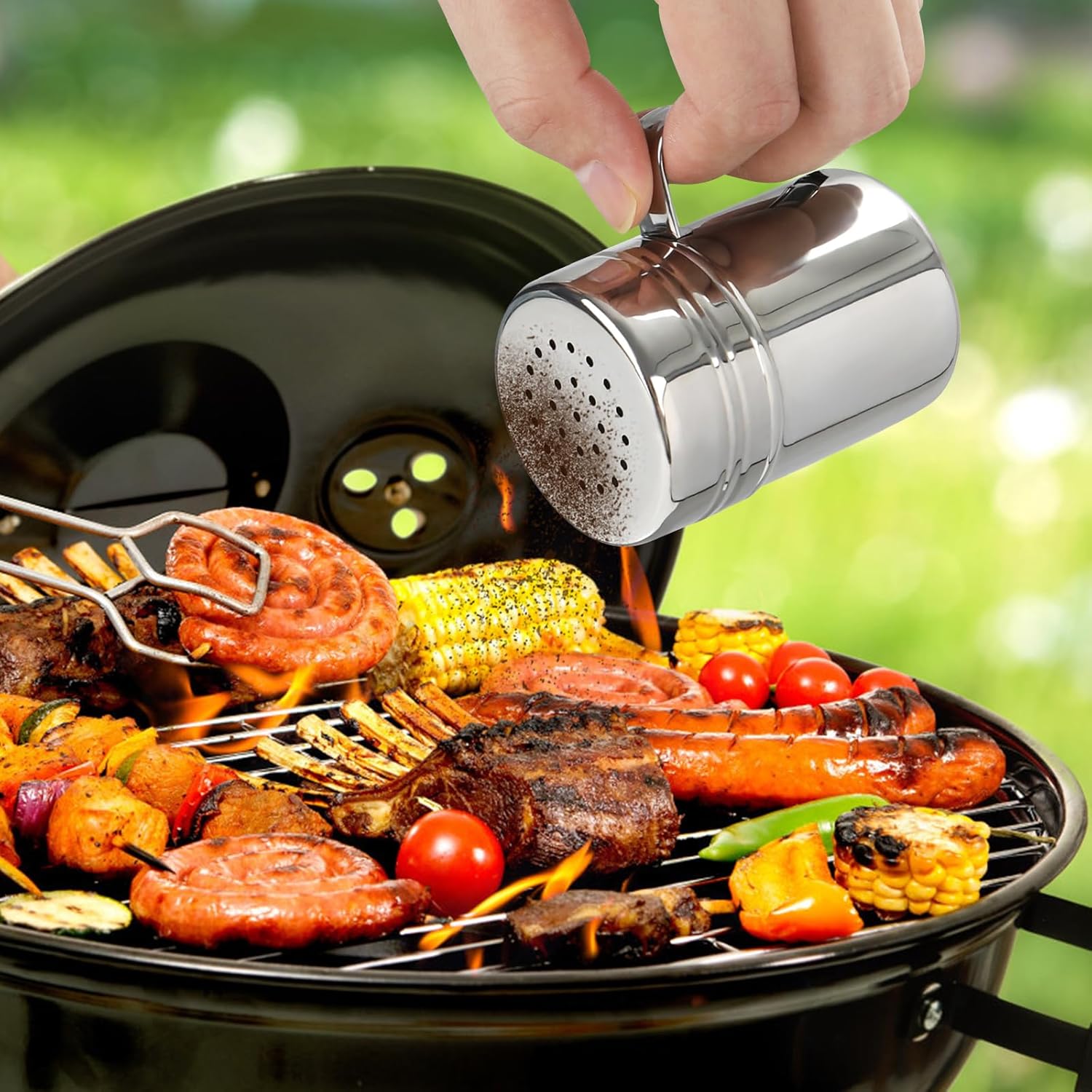 Accmor 2pcs Stainless Steel Dredge, Salt Pepper Dredge Shakers with Handle, Seasonings Spice Shakers with Lid, 6 Ounce