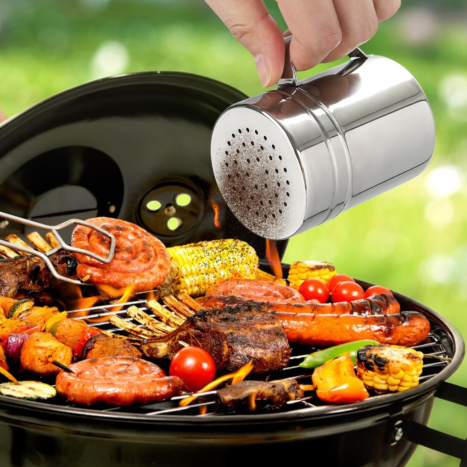 Accmor 2pcs Stainless Steel Dredge, Salt Pepper Dredge Shakers with Handle, Seasonings Spice Shakers with Lid, 10 Ounce