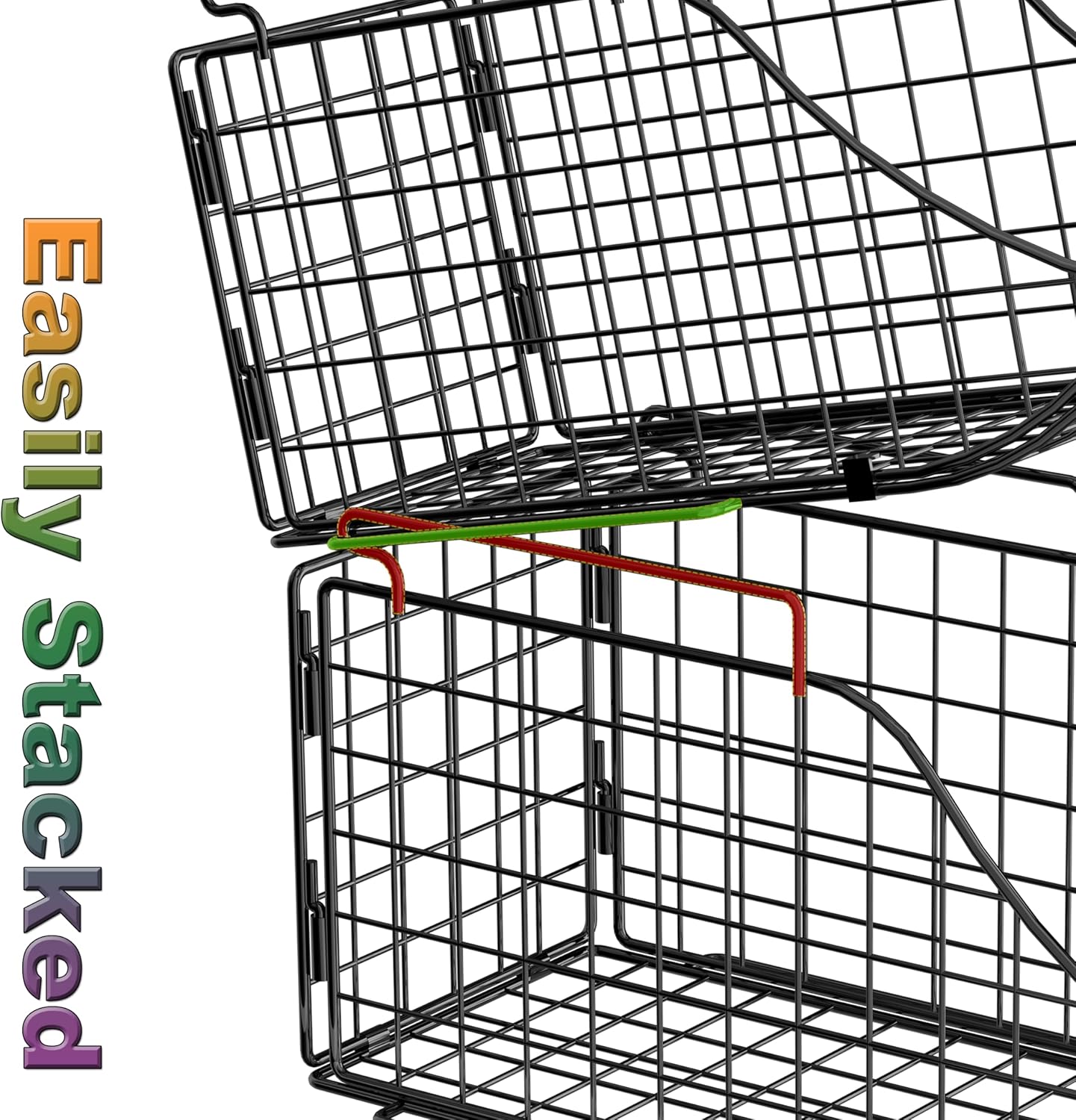 - 【Build-in Handles for Easy Movement】Equipped with built-in handles on each basket, this storage solution allows for easy transportation and maneuverability. By jamming the wire at the bottom of the basket, the handles provide added support and stability to the entire stack. With its durable construction and user-friendly design, this can organizer is a versatile solution for your storage needs.