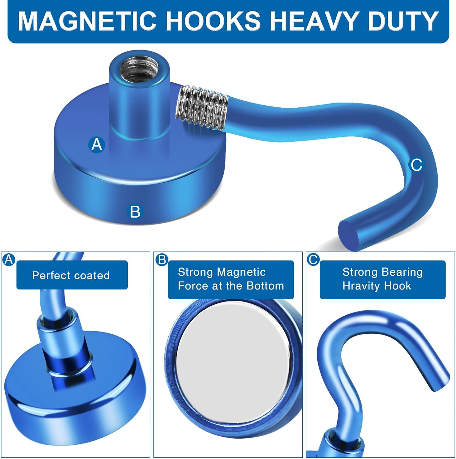LOVIMAG Cruise Essentials, 40Lbs Blue Cruise Magnets, Magnet Hooks for Cruise Cabin,Strong Magnetic Hooks for Hanging Cruise Lanyard, Fridge, Ceiling, 6 Pack
