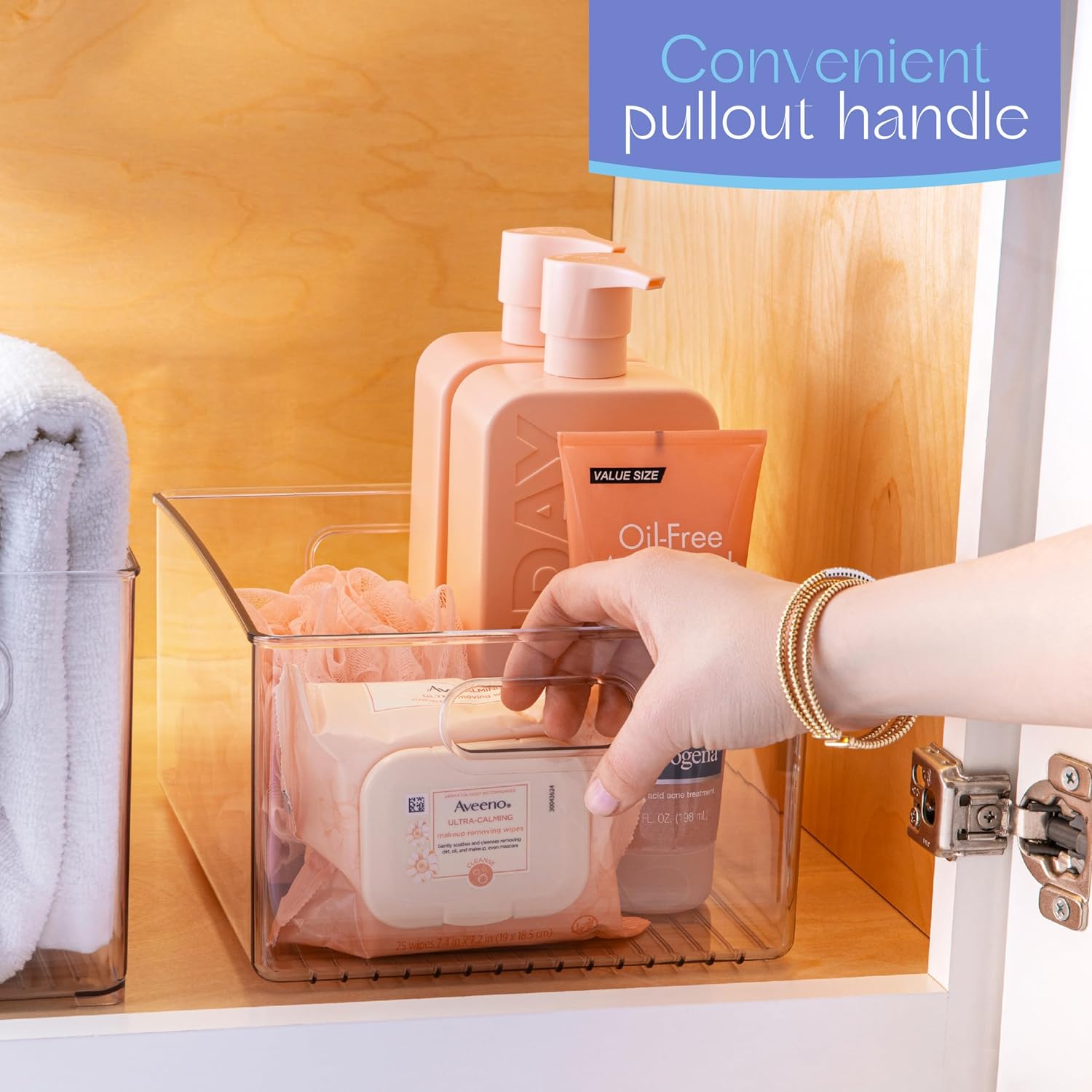 Plastic Food Storage 6 Pack Clear Container Bin with Handles for Organizing Kitchen, Pantry, Refrigerator, Freezer, Pantry, Cabinet, Closet, Bathroom 10”x8”x5”