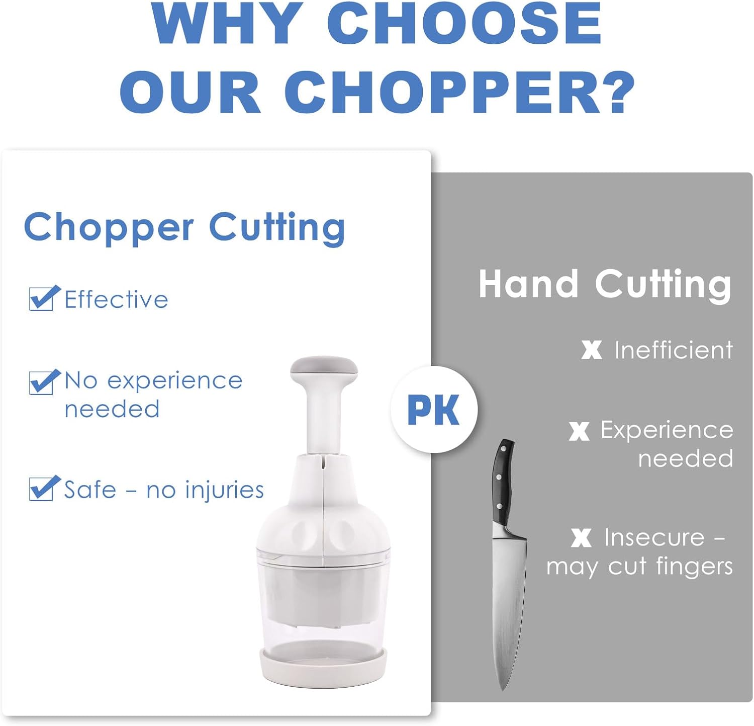 Vegetable Chopper, Food Chopper Manual Hand, Onion, Salad, Garlic, Nut & Veggie Cutter, Dishwasher Safe, White