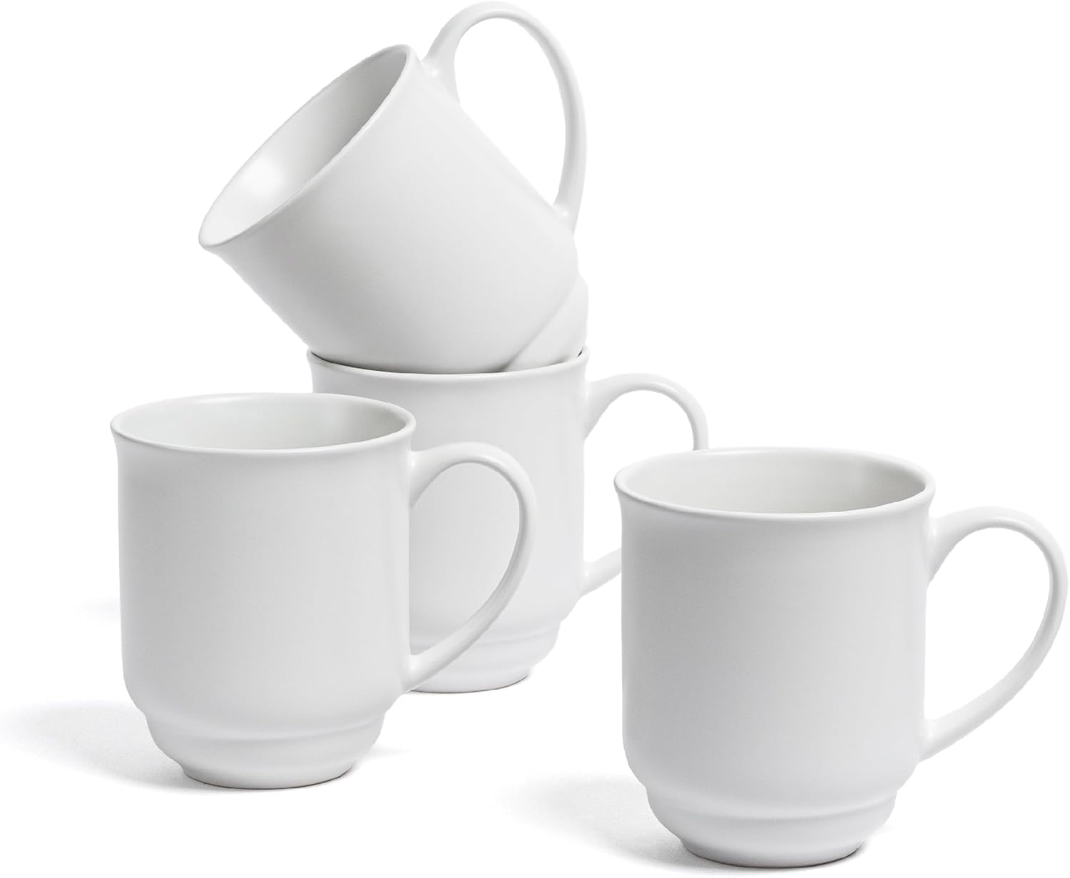 over&back Rim Stoneware Coffee Mugs - 4-Piece Mug Set - Enjoy the Perfect Cup of Coffee, Tea, Latte, and More - Semi-Matte White - 16oz