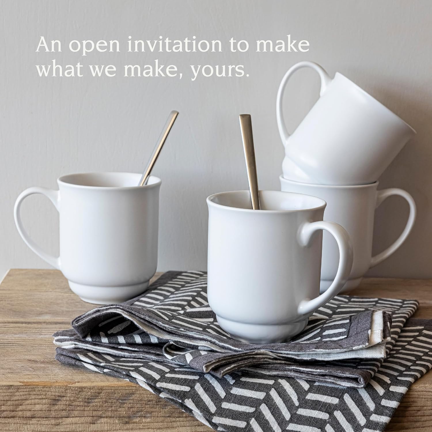 - RIM DESIGN: Boasting a traditionally elegant profile, our stoneware coffee cups easily pair with every other piece in the collection. Add any of our dinnerware sets, serving bowls, or mugs for an effortless, custom tablescape.