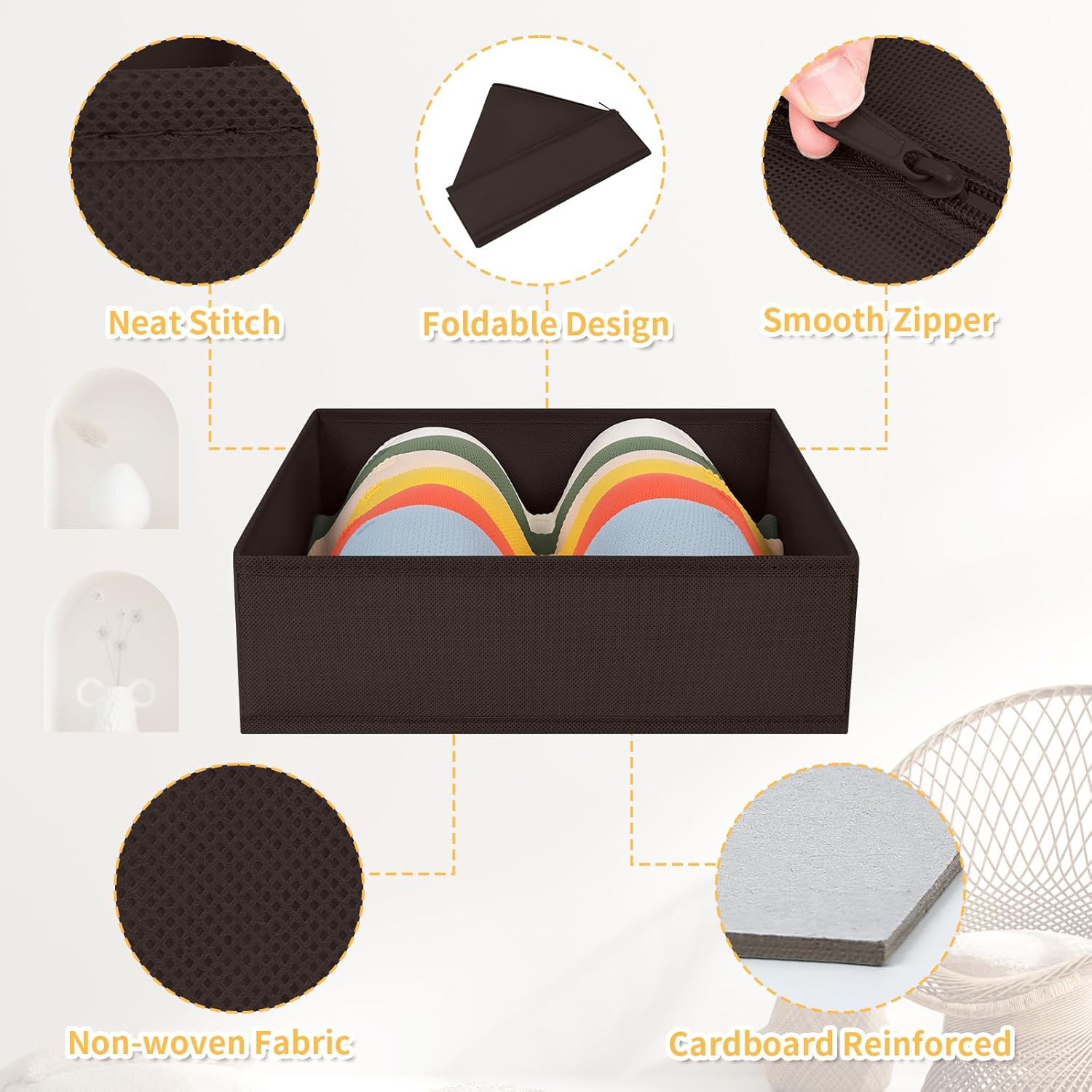 DIMJ Drawer Organizer Clothes, 12 Pack Underwear Organizer, Foldable Closet Organizers, Sock Organizer Bra Organizer, Fabric Dresser Organizer for Clothes, Bra, Socks, Tie (Brown)