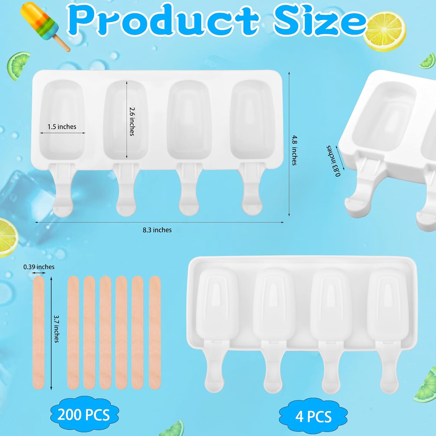 - Perfect Combination: you will receive 4 pieces silicone popsicle molds and 200 pieces wooden sticks, enough to meet your daily use and replacement, this innovative and perfect combination of 4 cavity popsicle molds makes it easy to make multiple popsicles at once, perfect for making delicious and refreshing homemade frozen foods