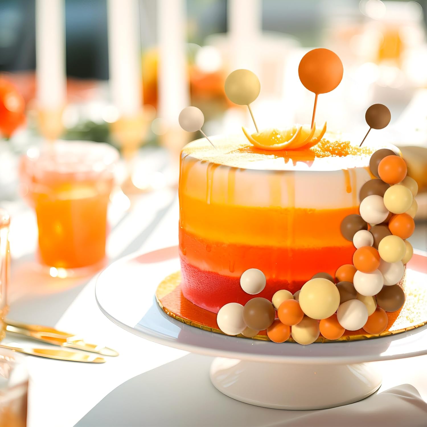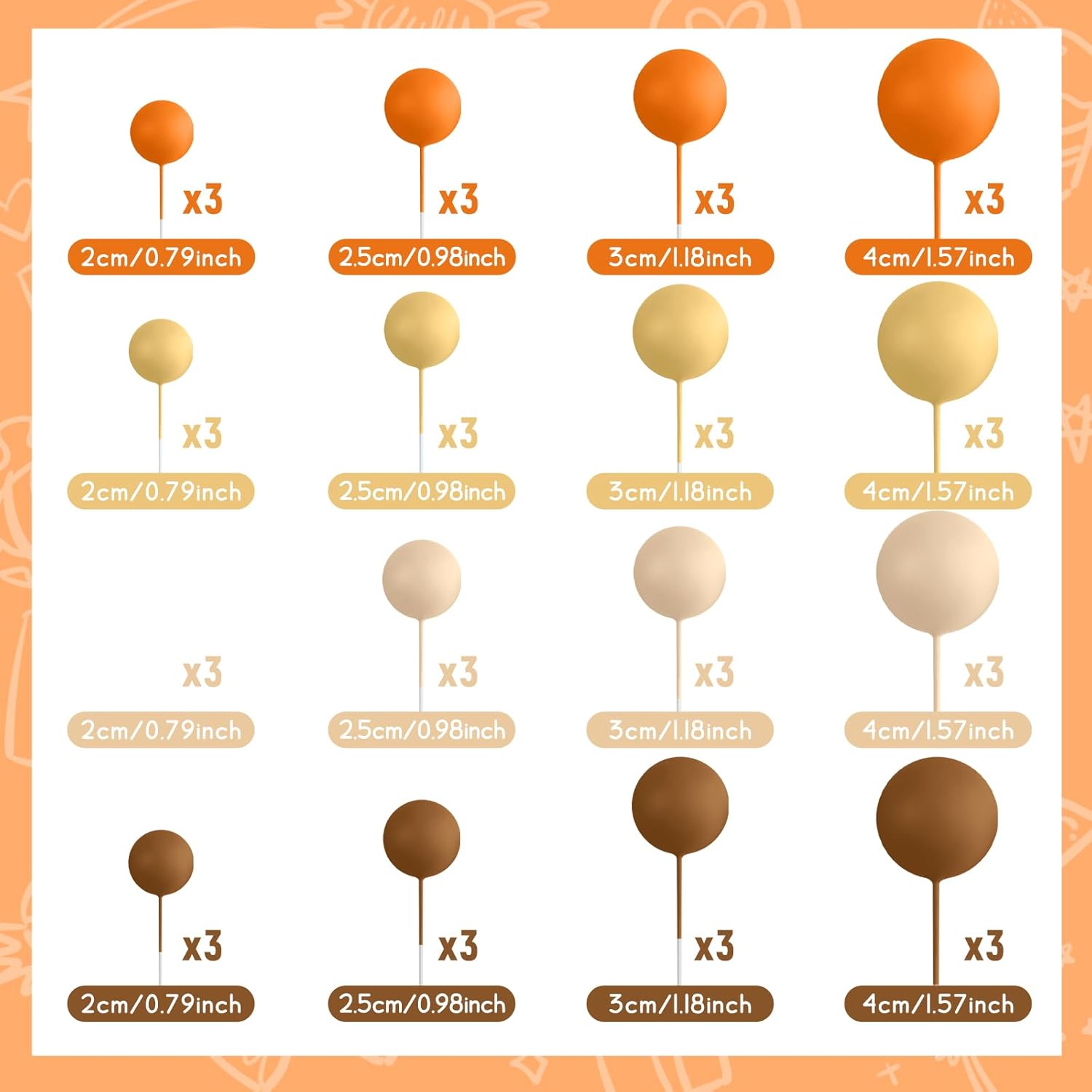 48 Pcs Balls Cake Topper Decorations Balloon Cupcake Toppers Foam Cake Topper Balls Cake Balls Decorations for Birthday Party Wedding Cake Decorating (Orange, Yellow, Apricot, Khaki)