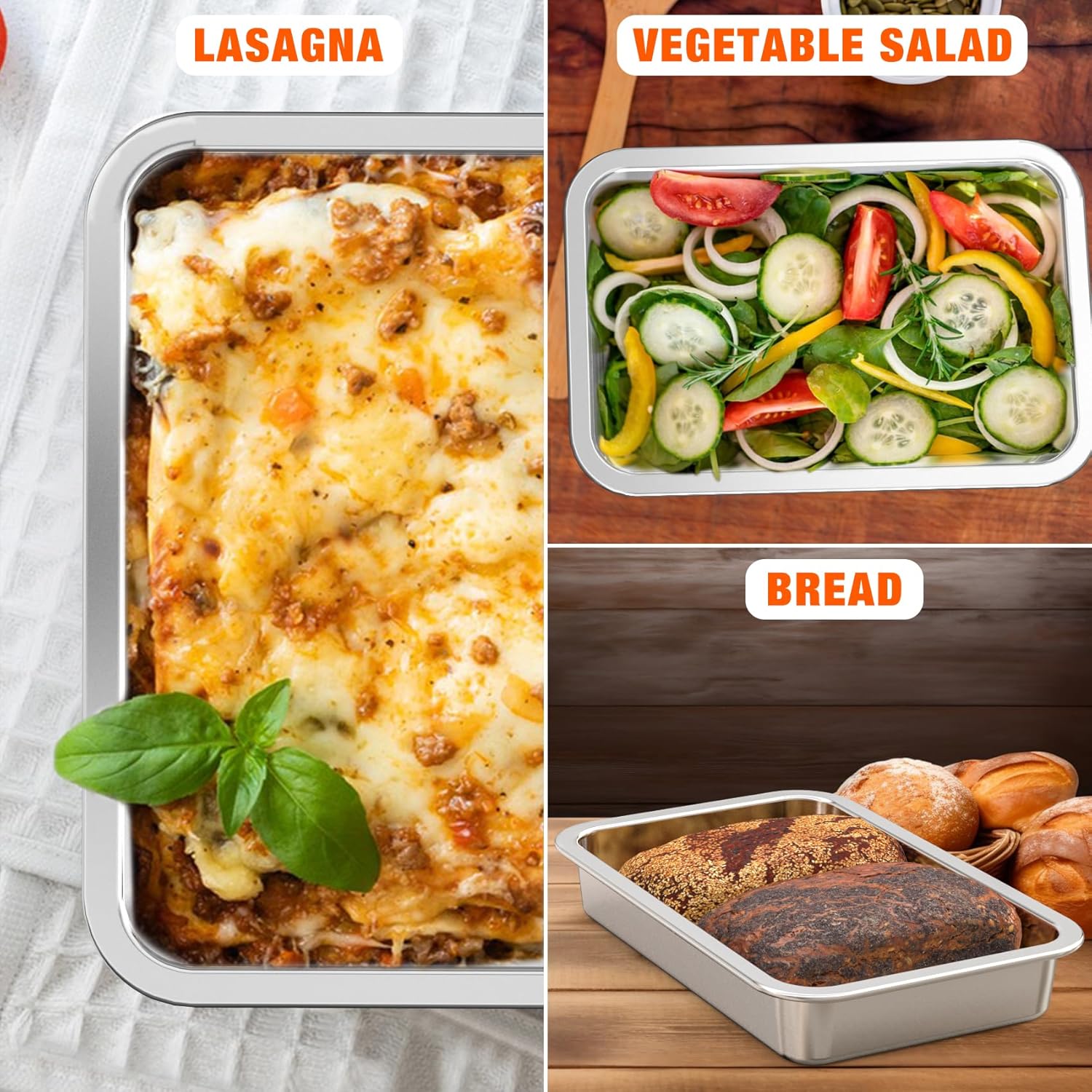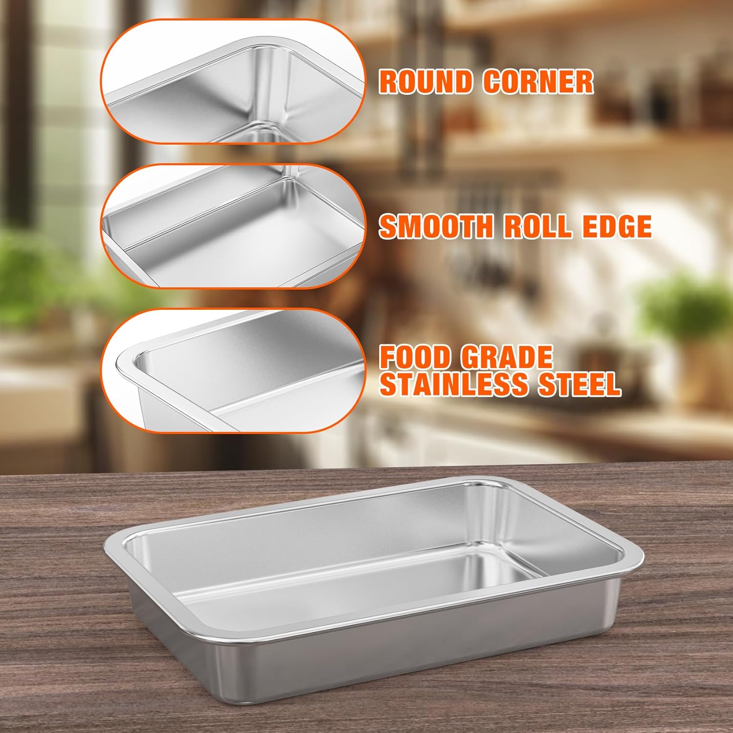 - 【Food-Grade Safety】- Made of high-quality food-grade stainless steel, this baking pan ensures no harmful chemicals are released at high temperatures, safeguarding your health. It's also lightweight for effortless handling.