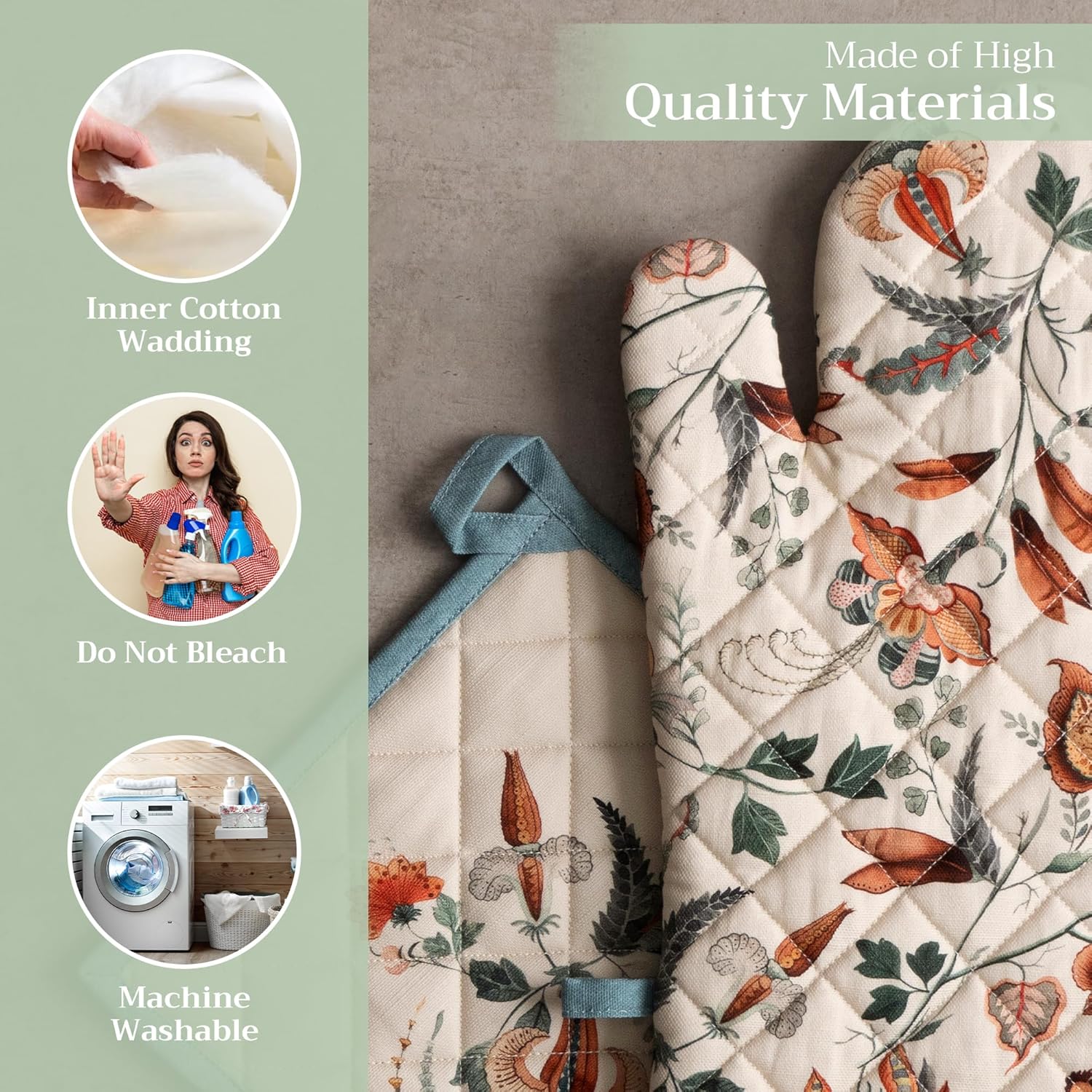 - Premium Quality: Crafted from quilted 100% cotton, this heat resistant oven mitt and pot holder set offers comfort, flexibility, and protection from hot cookware. Ideal cotton oven mitts for daily kitchen use and cooking safety