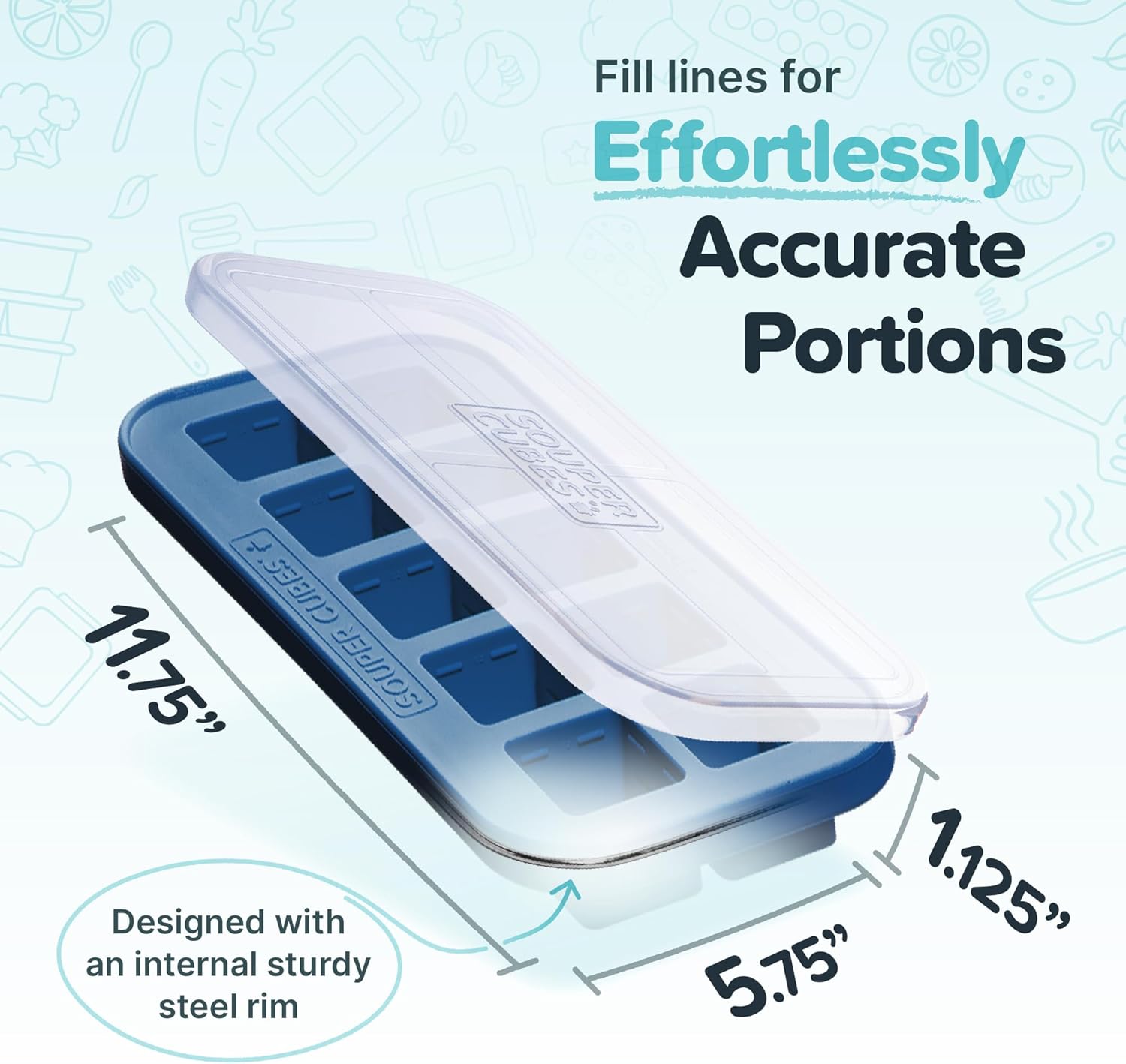- EASY TO PORTION: These silicone 1 oz. freezing trays come with convenient fill lines at 1 Tbsp, 2 Tbsp, 15 mL, 30 mL, and 1 oz. Each tray measures 11.75" L x 5.75" W x 1.25" H.