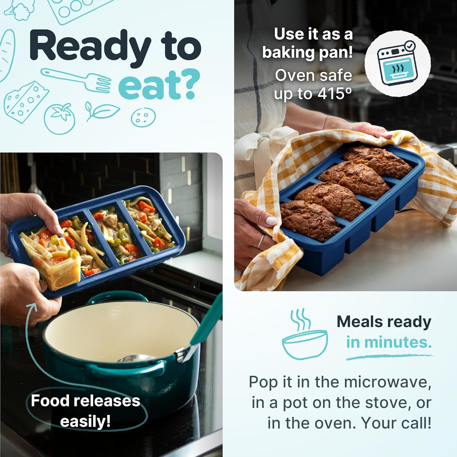 - MEAL PREP: Spend less time thinking about what you're going to eat and more time enjoying it. Our silicone freezer trays with lids are designed to make meal prep a breeze. They are made from 100% pure platinum food-grade silicone with a steel-reinforced top and a convenient lid.