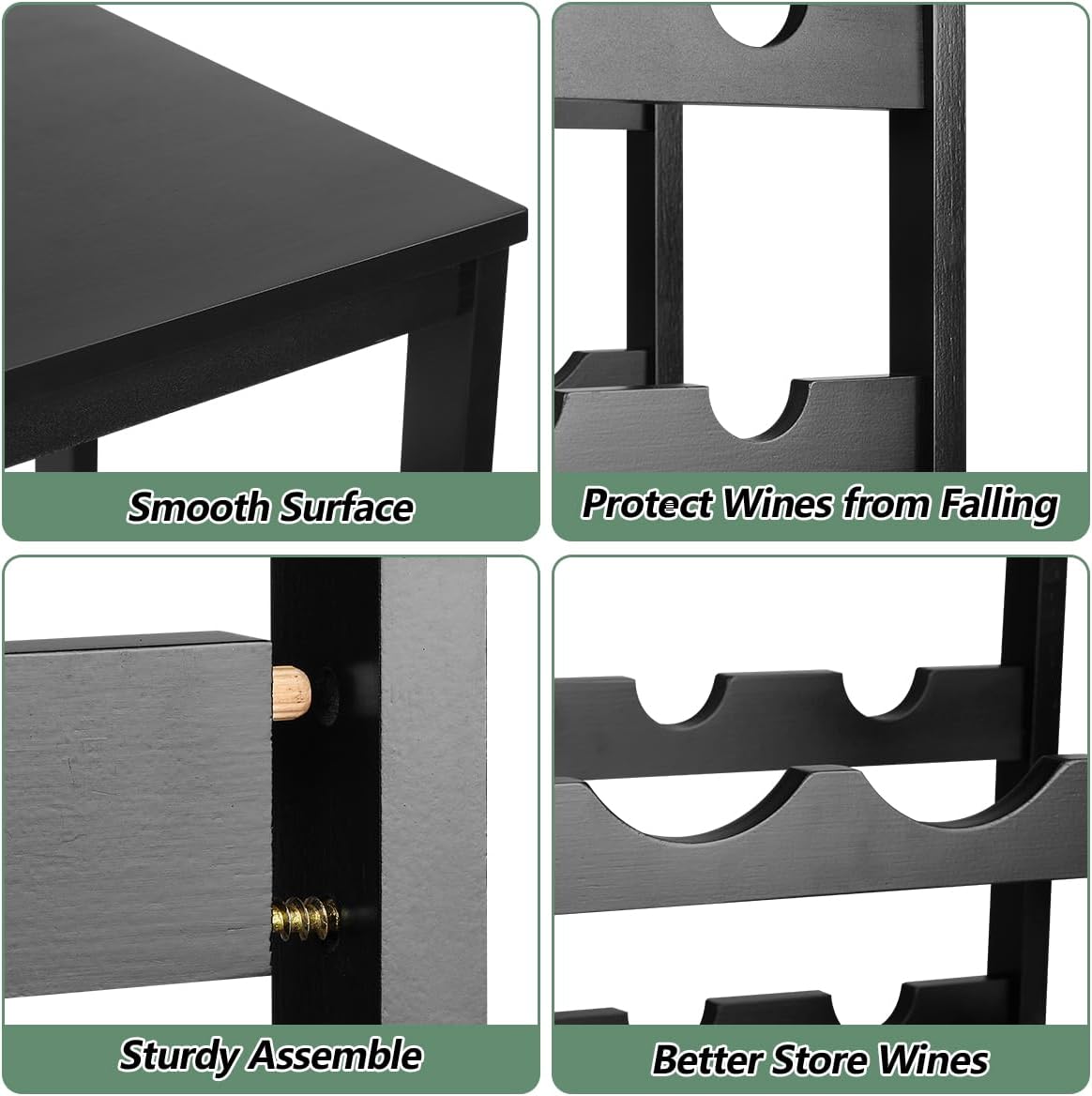 Wine Rack 24-Botttle Freestanding Floor, 6-Tier Wine Rack Shelf with Table Top, Bamboo Display Wine Storage Shelves Kitchen Bar Dining Room Living Room, Black