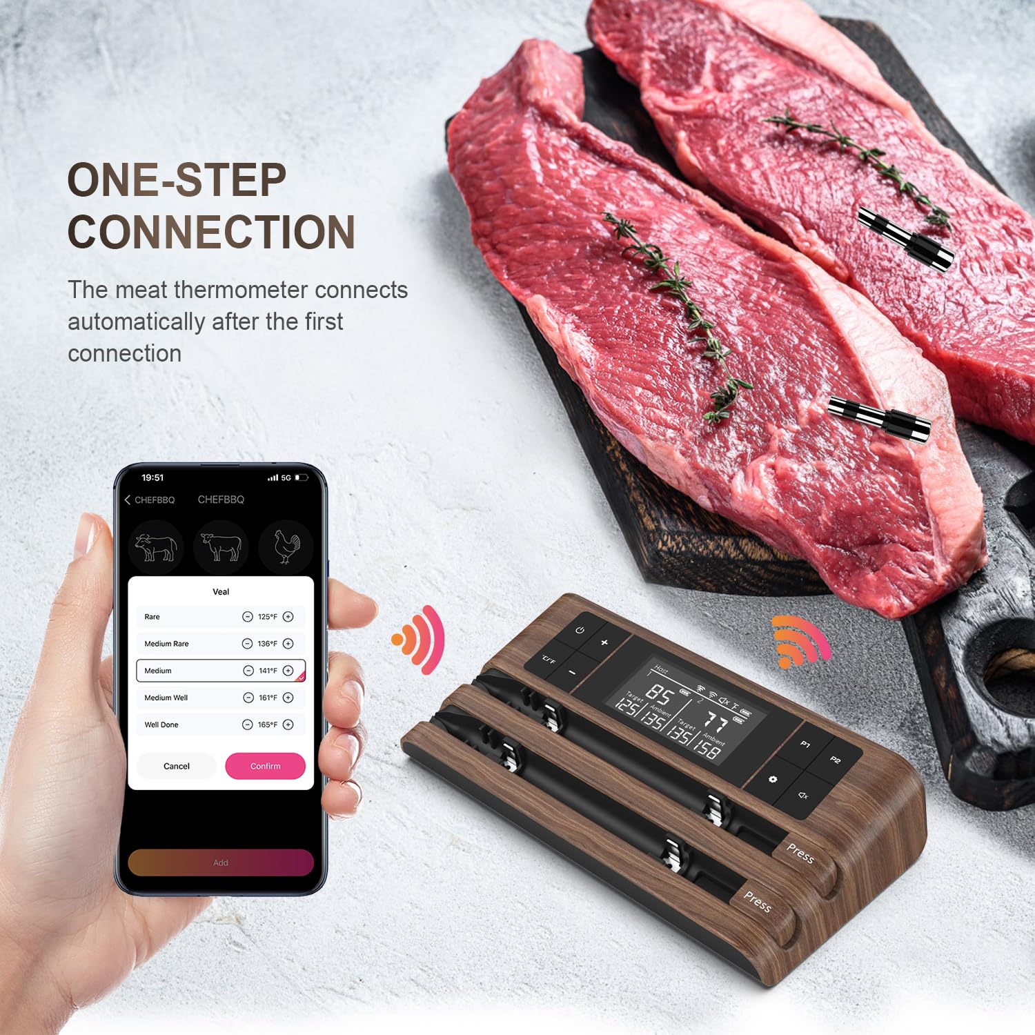 Wireless Smart Meat Thermometer with Dual-Sensor Probe, 500FT Remote Monitoring, Dedicated App, Real-Time Ambient and Food Temperature Tracking for Precise Cooking Control