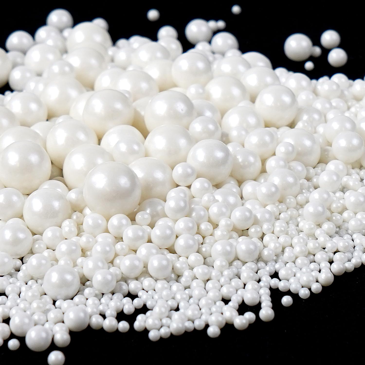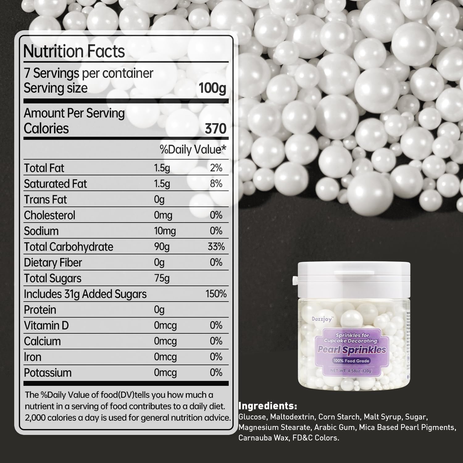 Dazzjoy Edible White Pearl Sugar Sprinkles, White Pearls for Cake Decorating, 130g/4.58oz, Candy Baking Cake Decorations, Cupcake Toppers & Cookie Decoration, Wedding Party Valentines Easter Supplies