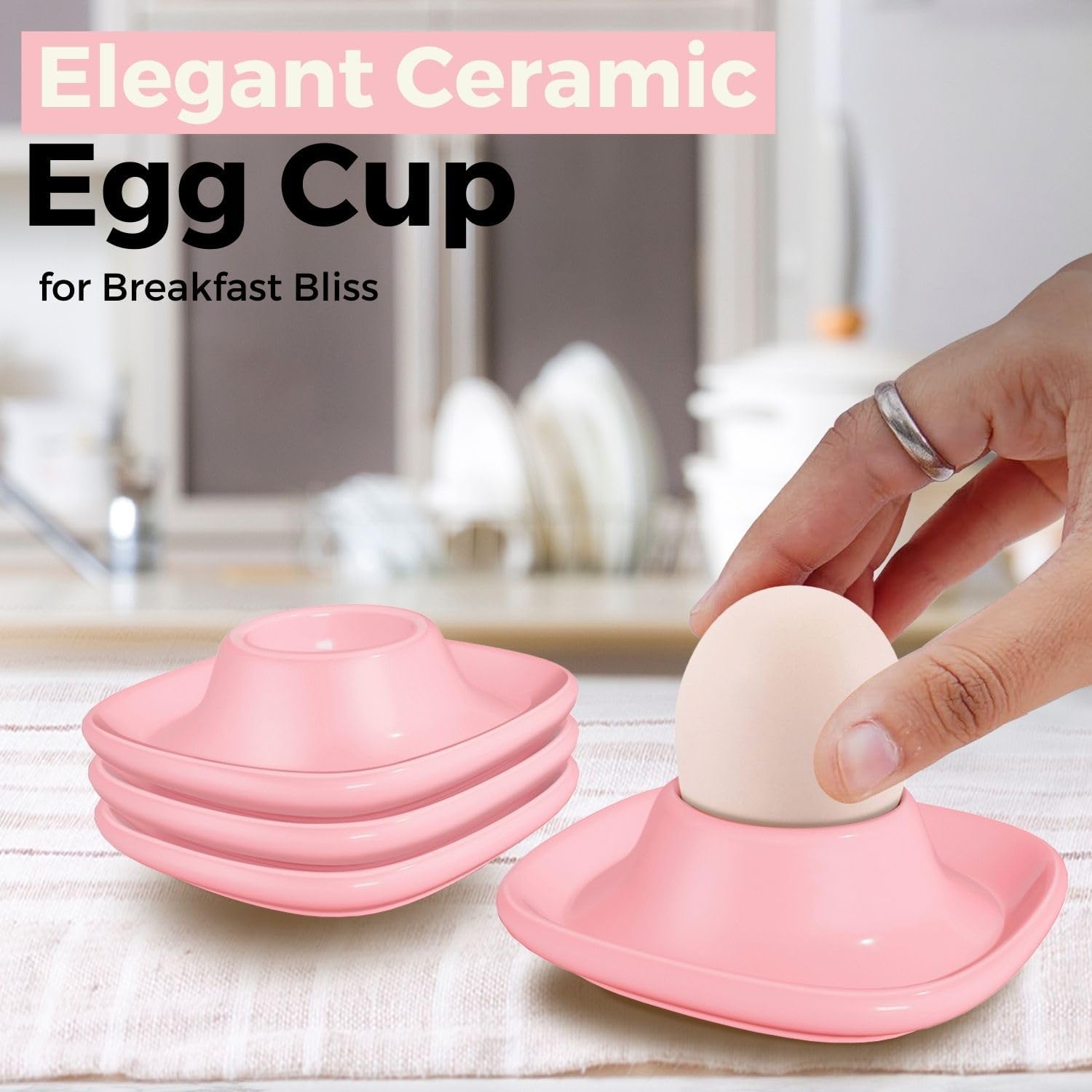 Flexzion Egg Cups for Soft Boiled Eggs - Set of 6 Ceramic Egg Holder - Stackable Egg Coddler Cups with Base for Serving, Breakfast, Brunch - Kitchen Table Decor, Pink