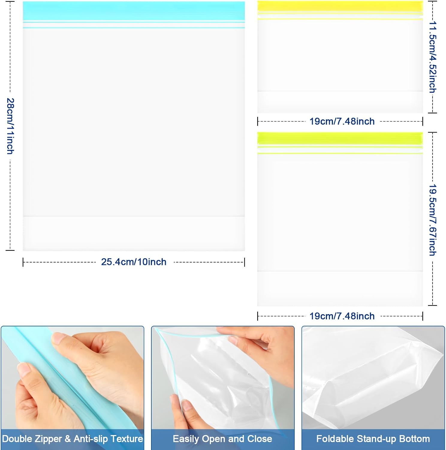 - VERSATILE: 16 pcs 1 gallon bags with size 10" W x 11"H, collapsible and stand up design makes them great containers for food storage (meal prep, soup, snack pouches, etc), home organize (cosmetics, jewelry, stationery etc), travel storage bags (make-up, travel toiletries, etc), camping backpacking and more in home, office and outdoor.