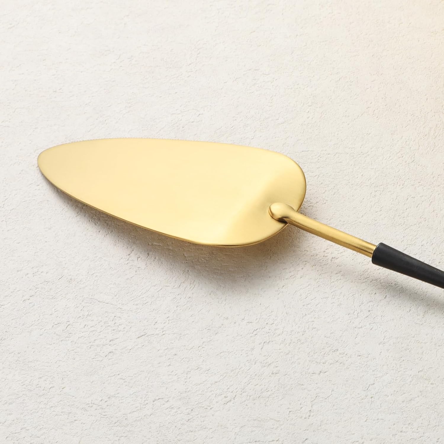 black gold Cake Cutter,Stainless Steel Pie Spatula Serrated,Cake Pizza Cutter Tart Dessert Slicer Comfortable Handle (black gold)