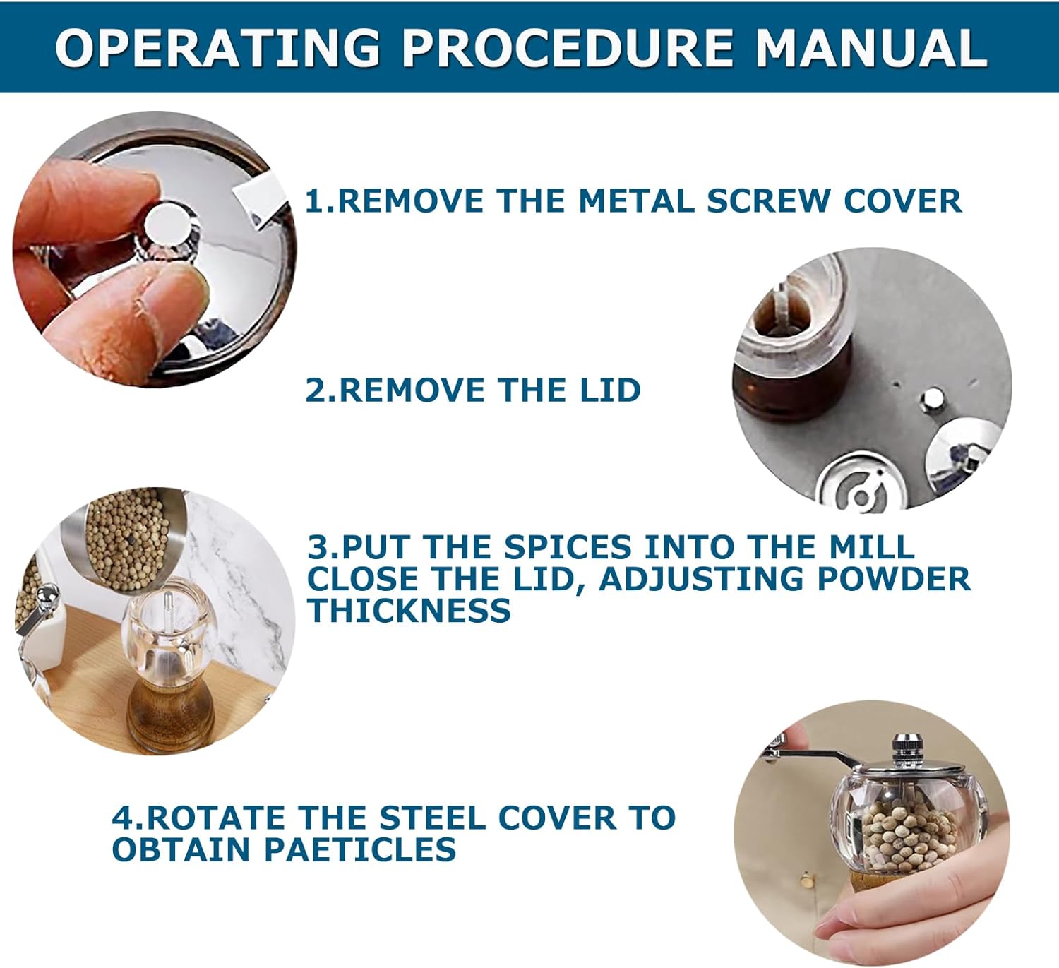 - Adjustable function: The mill is equipped with an adjusting device, which allows users to adjust the coarseness and fineness of the grinding powder according to their personal preferences and needs to meet the needs of different cooking scenes