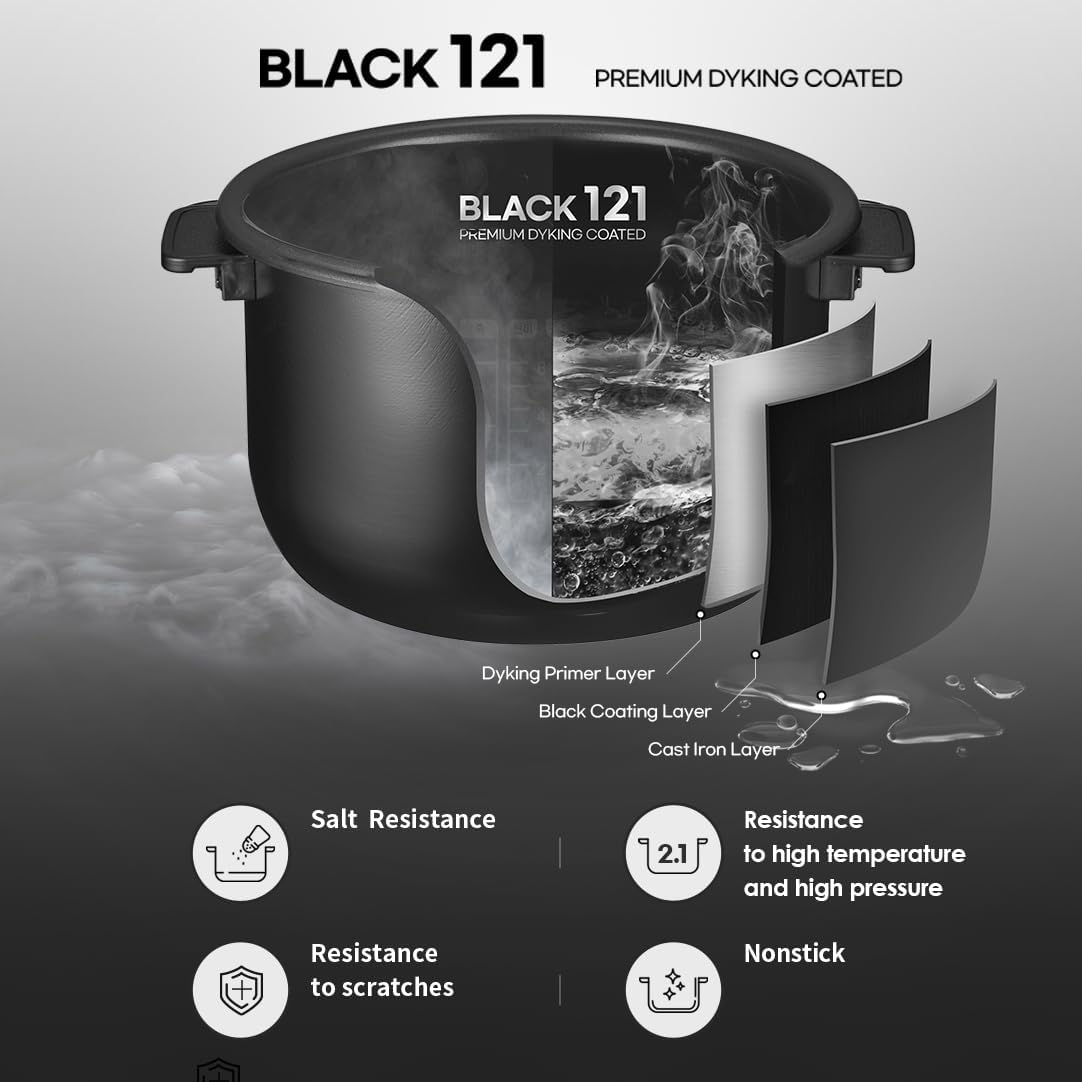 - 6 CUP (1.2 quarts) DYKING Inner-Pot : The Anti-Steam Coating Black 121 Innor Pot - Durable inner pot with scratch resistance.