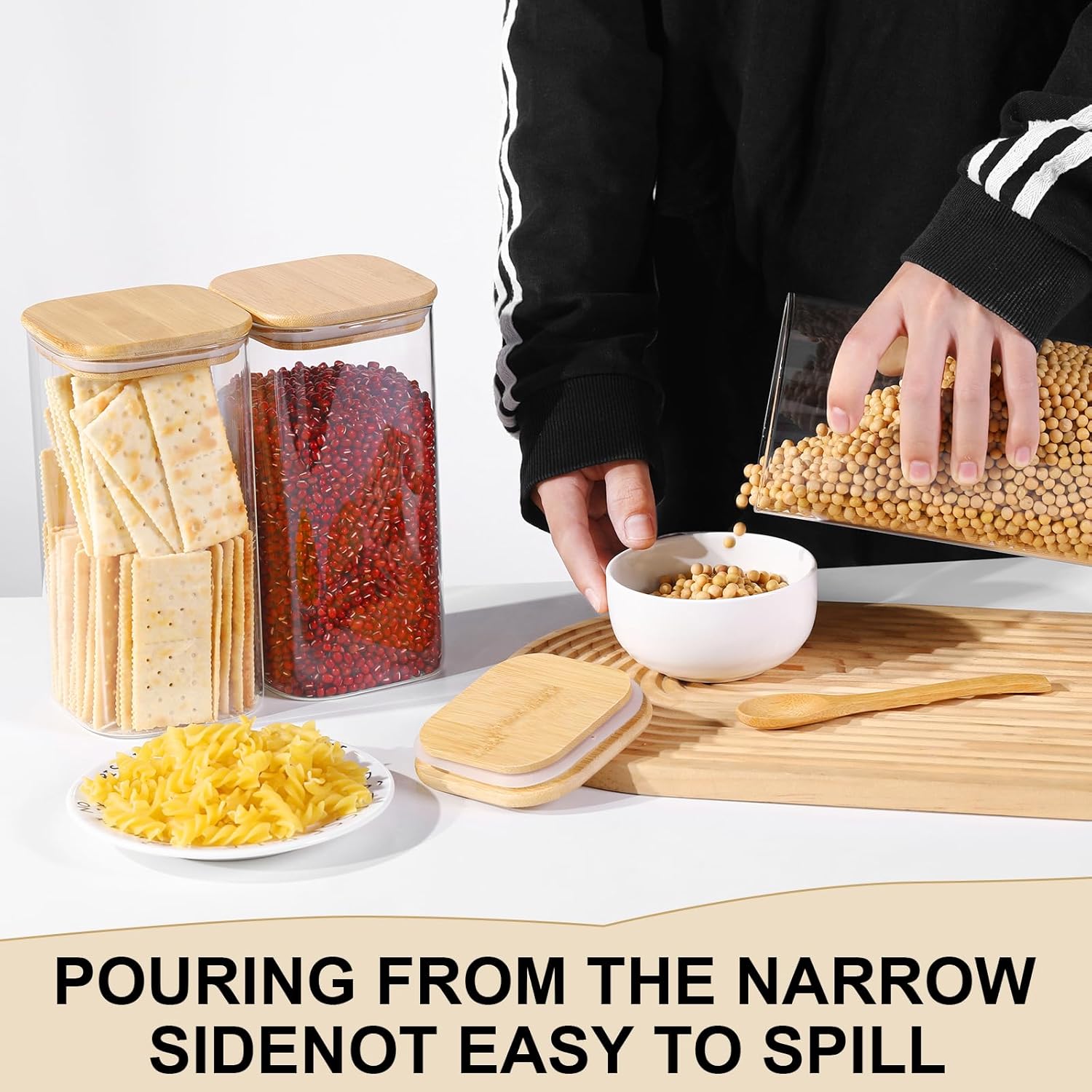 - Moistureproof: Keep your food fresher for longer with our Glass Food Storage Jars with Bamboo lid with silicone sealing loop .The specially designed lids create an airtight seal that locks in freshness and prevents moisture from entering, preserving the flavors and textures of your favorite snacks and ingredients.