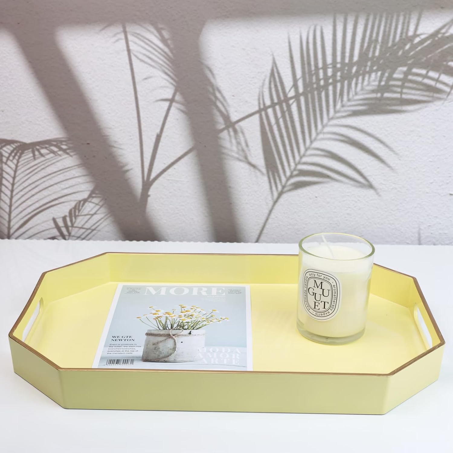 Spsyrine Yellow Plastic Serving Tray for Ottoman, Coffee Table, Octagon Decorative Tray for Entertaining, Outdoor, Living Room, Home Decor