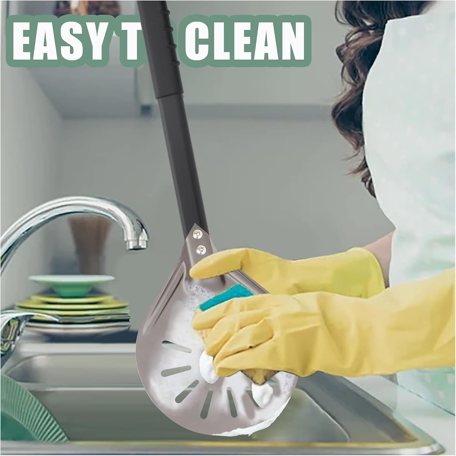 - MORE PROFESSIONAL SIZE:This professional pizza turning peel is equipped with a diameter 6 " of head and 15.7 " of handle. It is extremely portable. The included professional silicone handle cover prevents your hands from being burned
