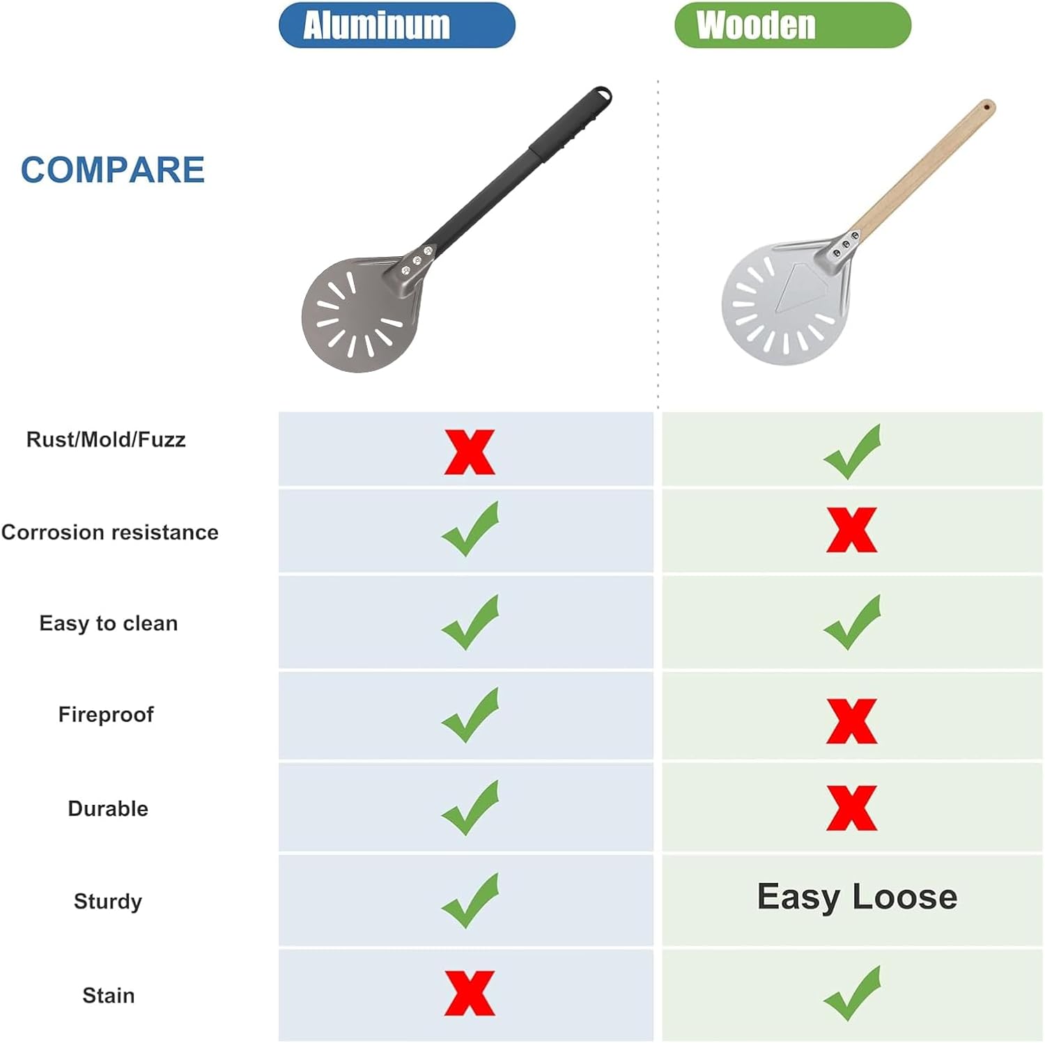 - PREMIUM MATERIAL: This metal pizza peel is made of high-strength and durable anodized aluminum. Not only resistant to high temperatures but also fall ,anti-rust. it is lightweight for easy handling and cleaning
