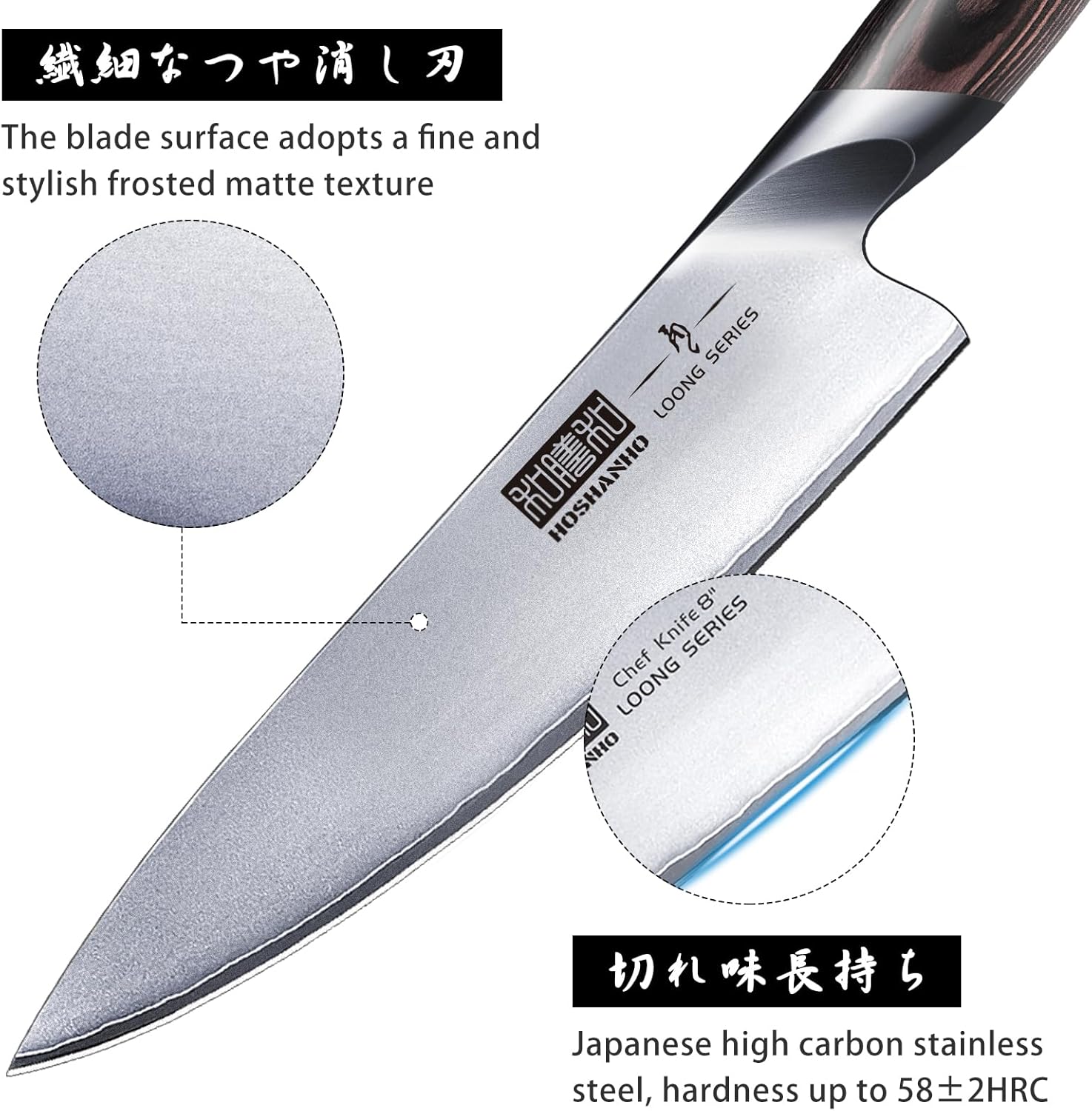 - 【Multipurpose Knife Set】HOSHANHO 8 pieces knife set includes: 8" chef knife, 8" bread knife, 7" santoku knife, 7" fillet knife, 6" utility knife, 3.75" paring knife, as well as a kitchen shear, hardwood knife block; A multifunctional set of knives allows you to choose the most suitable tool