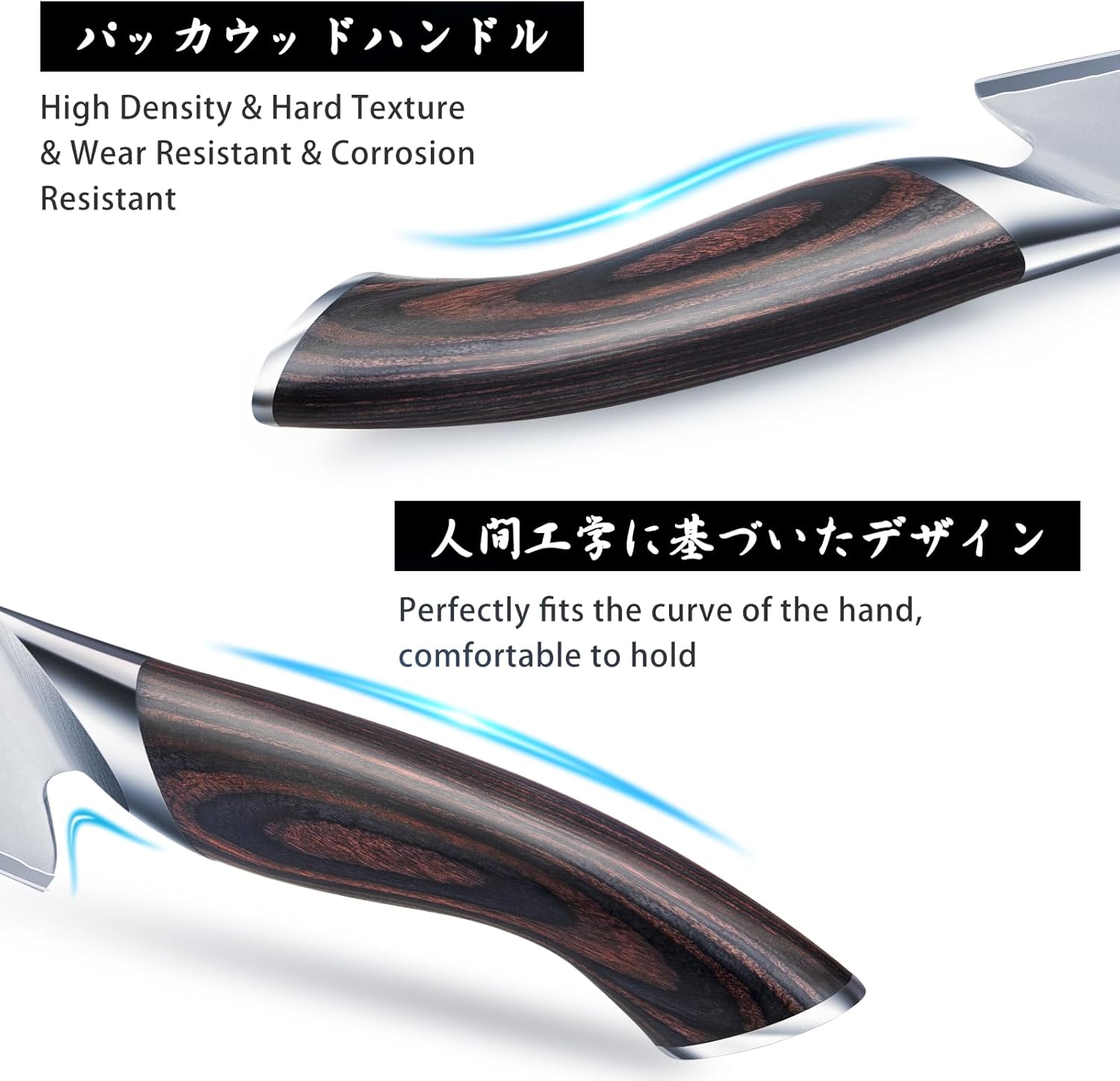 - 【Ergonomic Pakkawood Handle】The ergonomic handle of the knife set is designed to fit perfectly into any hand shape and significantly reduces the fatigue and discomfort that may occur when using the knife for a long time; The weight and balance point of the handle are carefully calculated, making the knife more flexible when in use