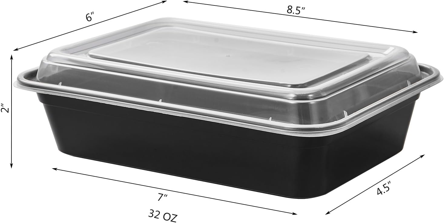 32 oz 50Pack Plastic Meal Prep Food Storage Containers with Lids Reusable 1 Compartment To Go Lunch Box Black Extra Large &Thick Microwave Freezer Safe BPA Free Stackable (Formerly FULING)