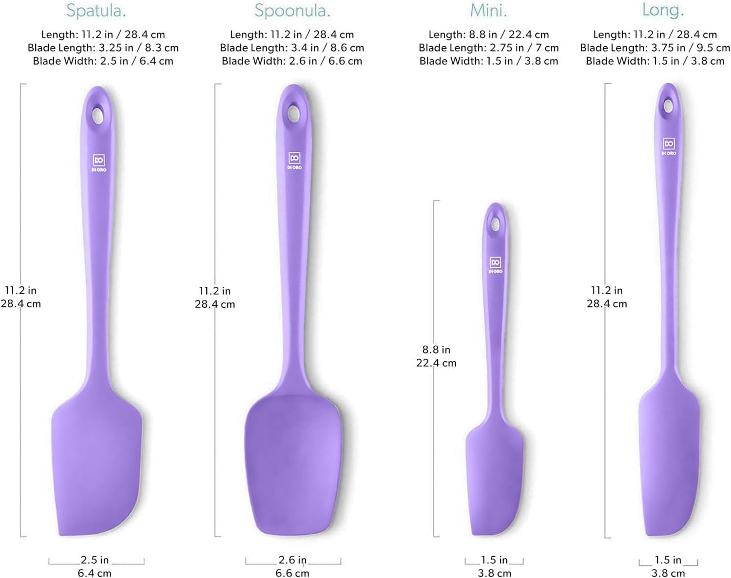 - ONLY THE BEST – Each piece in the DI ORO 4-Piece Seamless Silicone Spatula Set is made with food grade, BPA Free, and LFGB Certified Silicone. Built to withstand the heat, each spatula is heat-resistant up to 600°F, which means you will never melt your favorite spatula.