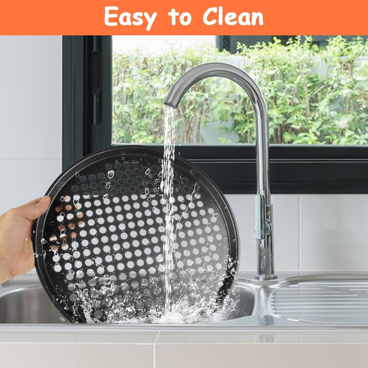 - Wide Application - Our 12 inch round pizza pan with holes can be used to bake not only pizzas, but also other foods such as garlic knots, thick fries or chicken fingers