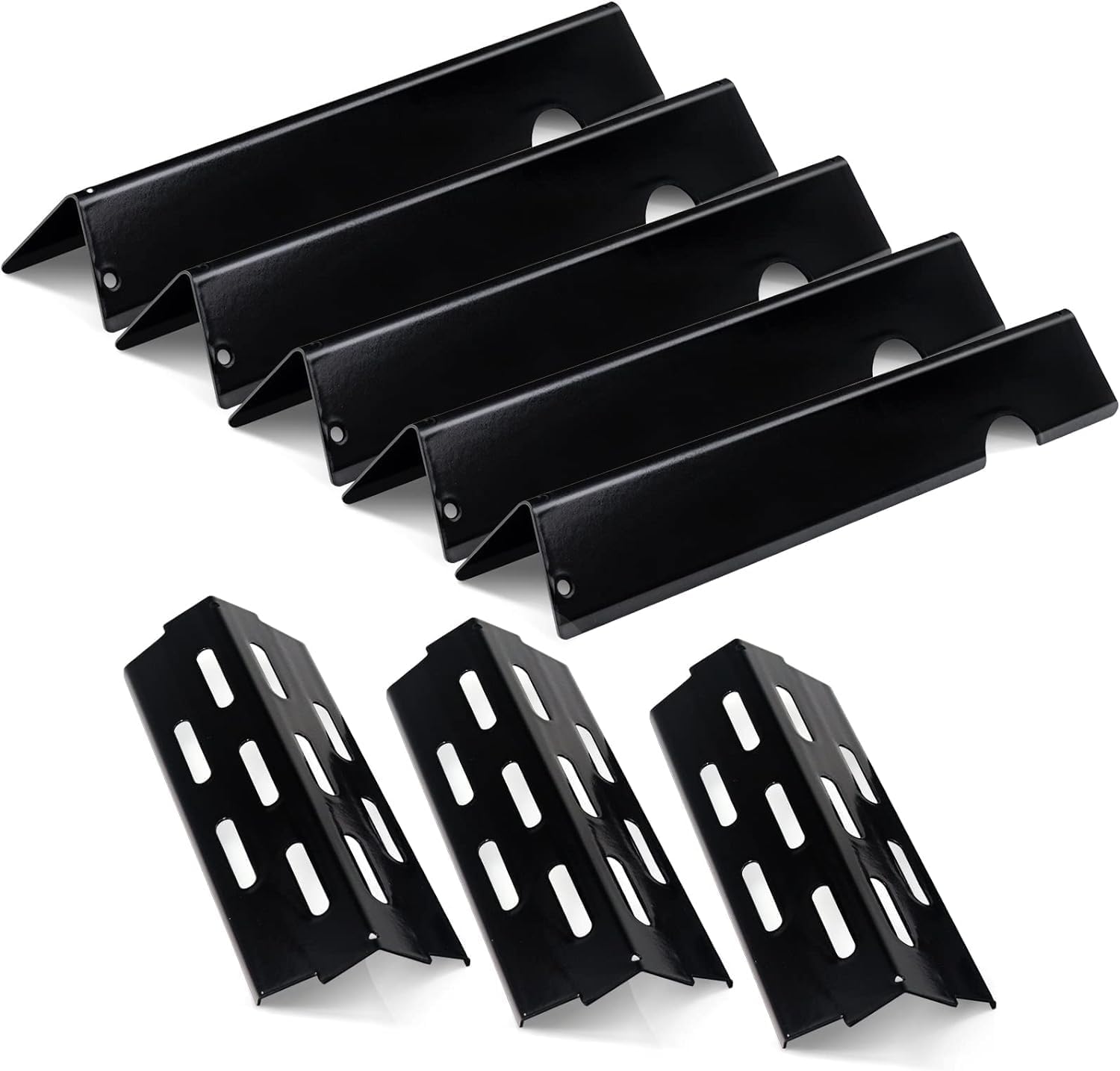 - 【Grill Replacement Parts Dimensions】5 Pack Grill Flavor bars: 17-1/8"L x 3"W, 3 Pack Heat Deflectors: 12-1/2"L x 4-1/4"W. Please double check the size of your original parts and compare with our grill replacement parts before ordering.