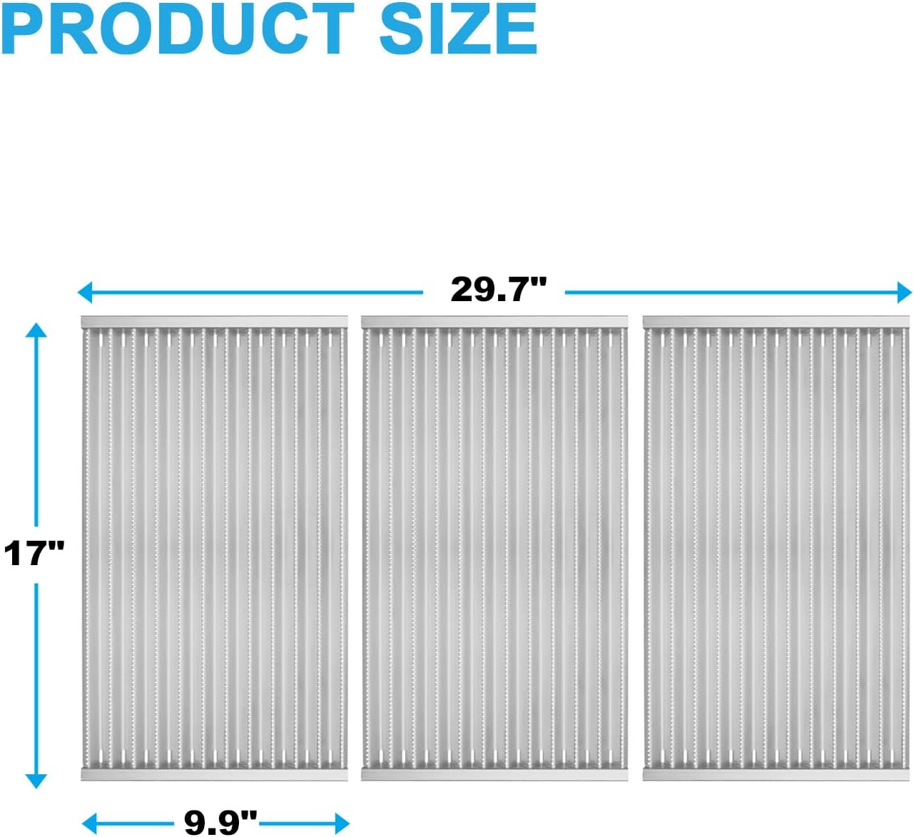 - 【Dimensions & Package】Package includes 3-pack Premium Stainless Steel Emitter Plates. Easy to install and replace. Emitter Plates: 17" x 9 7/8" per emitter. Make sure you measure the size of your original parts and compare with ours before you order.