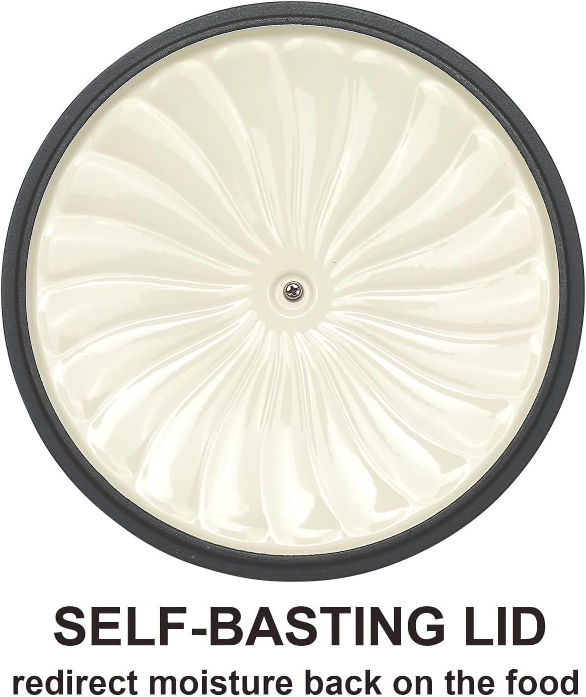 - The heavy lid of this cast iron braiser pan with lid has a raised pattern of water ripples on the inside. Our shallow dutch oven is designed with self-circulating condensation to allow full circulation of water vapor, locking in the moisture and flavor of your food, making your meals more delicious