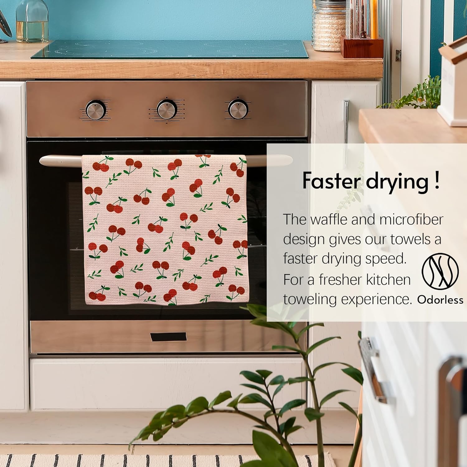 Kitchen Towels, 18" x 30" Dish Towels, Microfiber Tea Towels for Kitchen Drying, Superior Absorbency, Lemon Cherry Series, 2-Pack