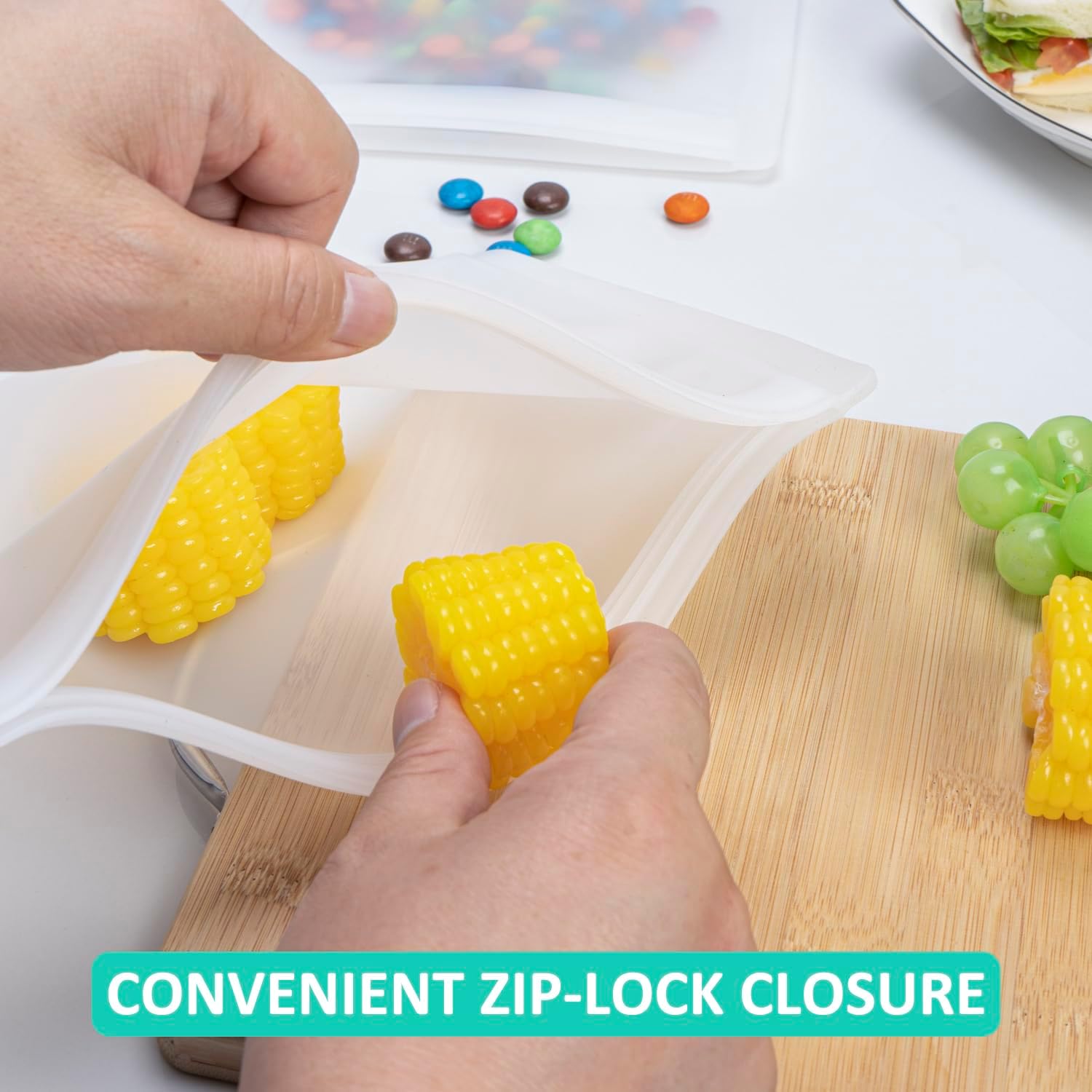 - ăSANDWICH & SNACK SIZESăThese reusable silicone food storage bags come with 4 sandwich size bags and 4 snack size bags. The translucent body helps to get a glimpse of what's inside, though not in crystal clear detail. Plus, One silicone bag can reduce up to 300+ single-use plastic bags a year, helping to create a waste-free world and save you a bundle